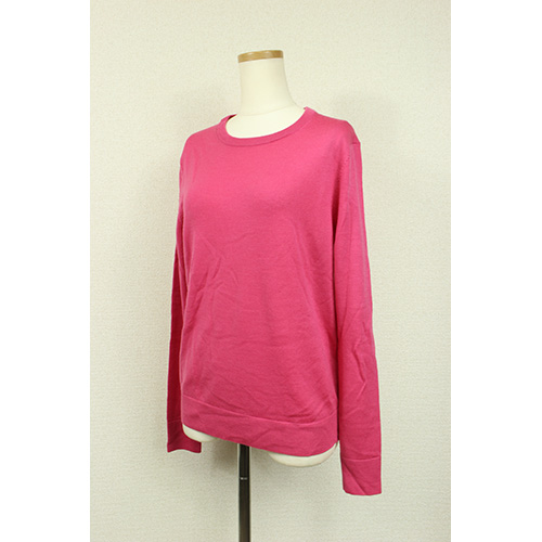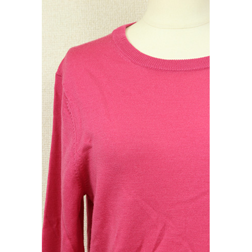 - シンプルなウールニットトップスです。伸縮性があるので体にフィットしても締め付け感がありません。コンパクトなサイズ感はボリュームスカートとの相性も抜群です。