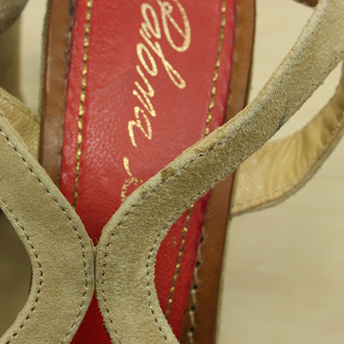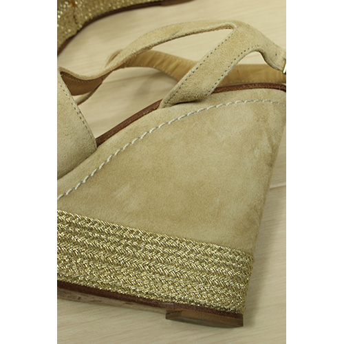 スペイン発のシューズブランド「Paloma Barcelo パロマ バルセロ」のスエードベルトウェッジサンダル。ウェッジサンダルなのでヒールが高くても歩きやすいです。