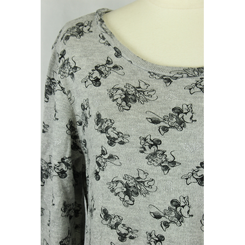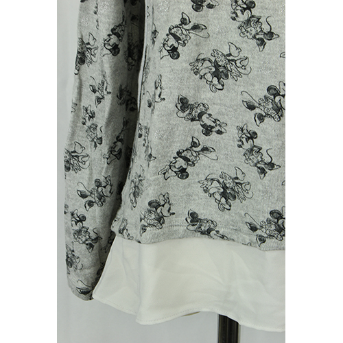 - ミニーちゃんの総柄がインパクト大のレイヤード風トップス。裾にかけてふんわりと広がるシルエットも女性らしさと気になるラインをカモフラージュしてくれ相乗効果もバッチリです。