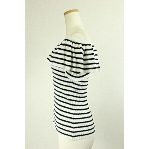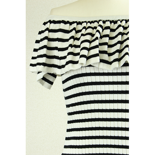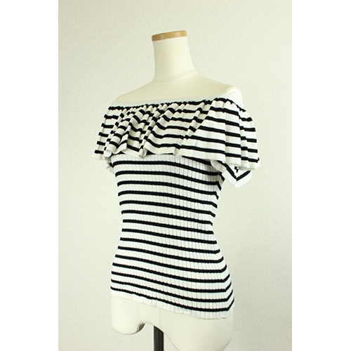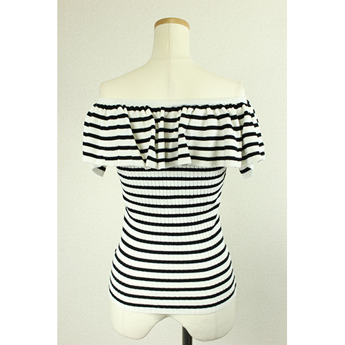- ボーダー柄が印象的なオフショルトップスになります。ボーダー柄でカジュアル×ガーリーのオシャレなバランスに。デコルテを出して女性らしさを演出できます。