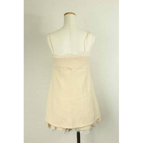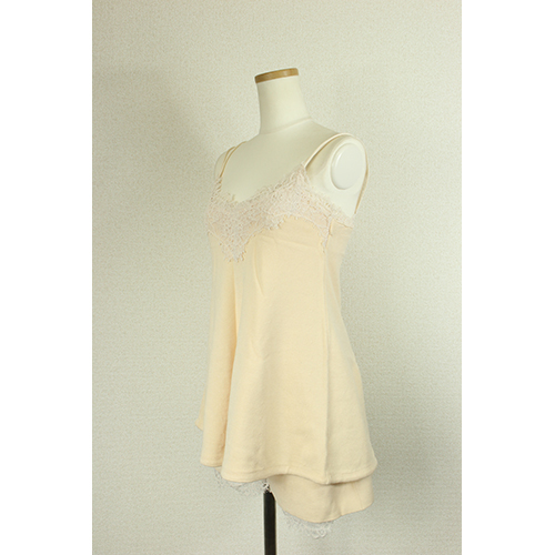 - ピンクベージュとレースの組み合わせが女性らしさ抜群のセットアップです。柔らかい生地で着心地も良く、ふわっとしたデザインも可愛らしいポイントです。