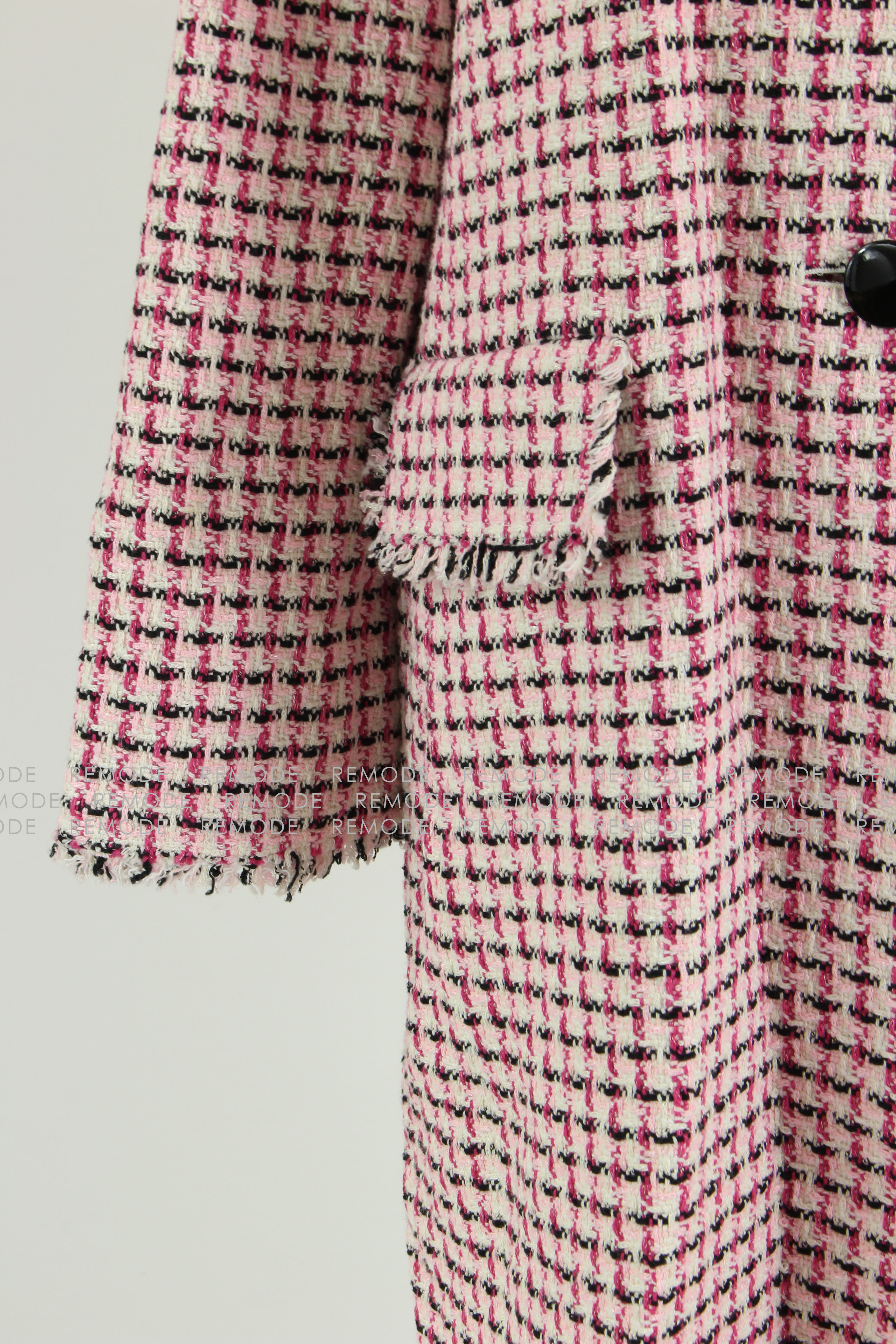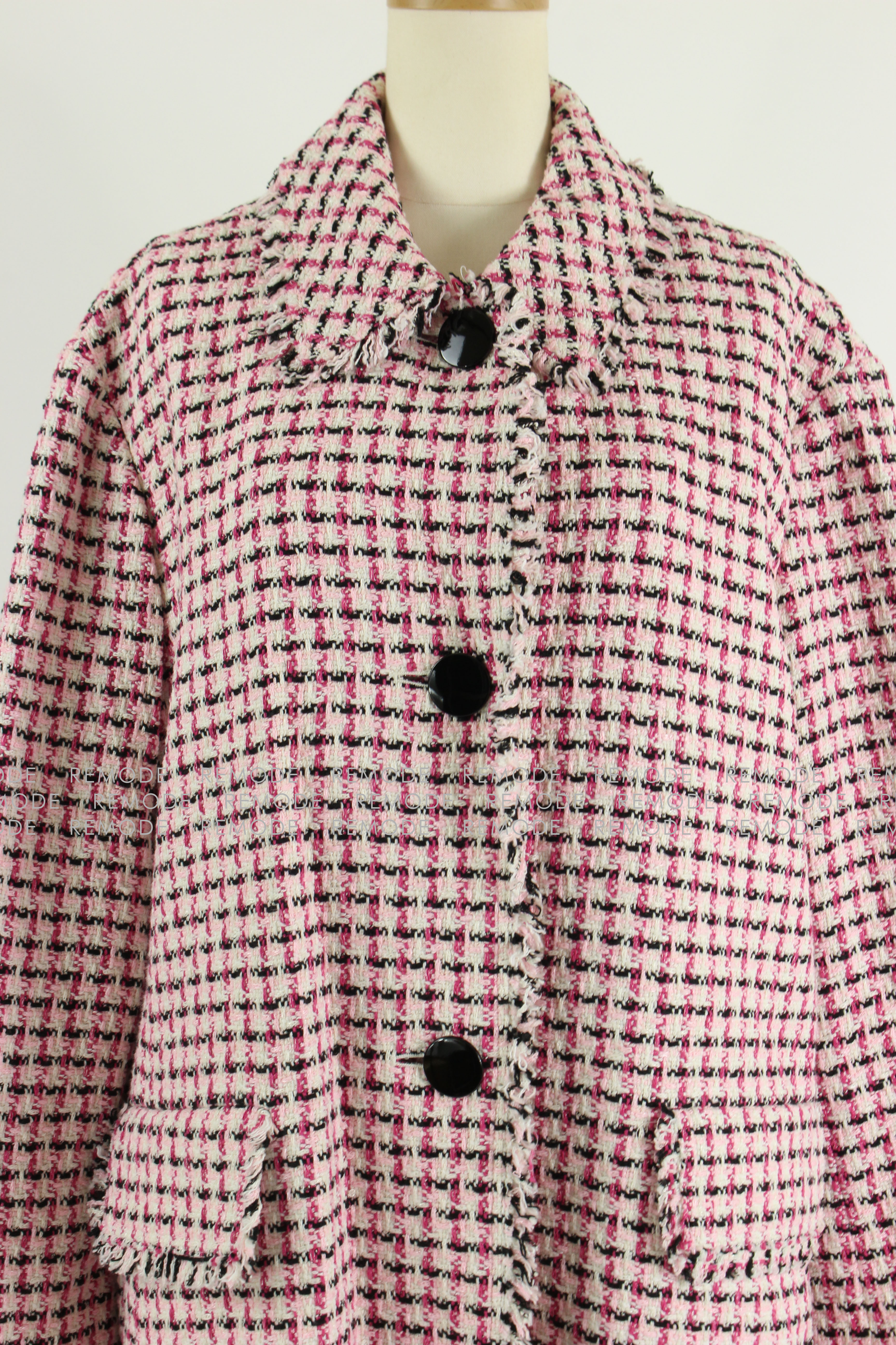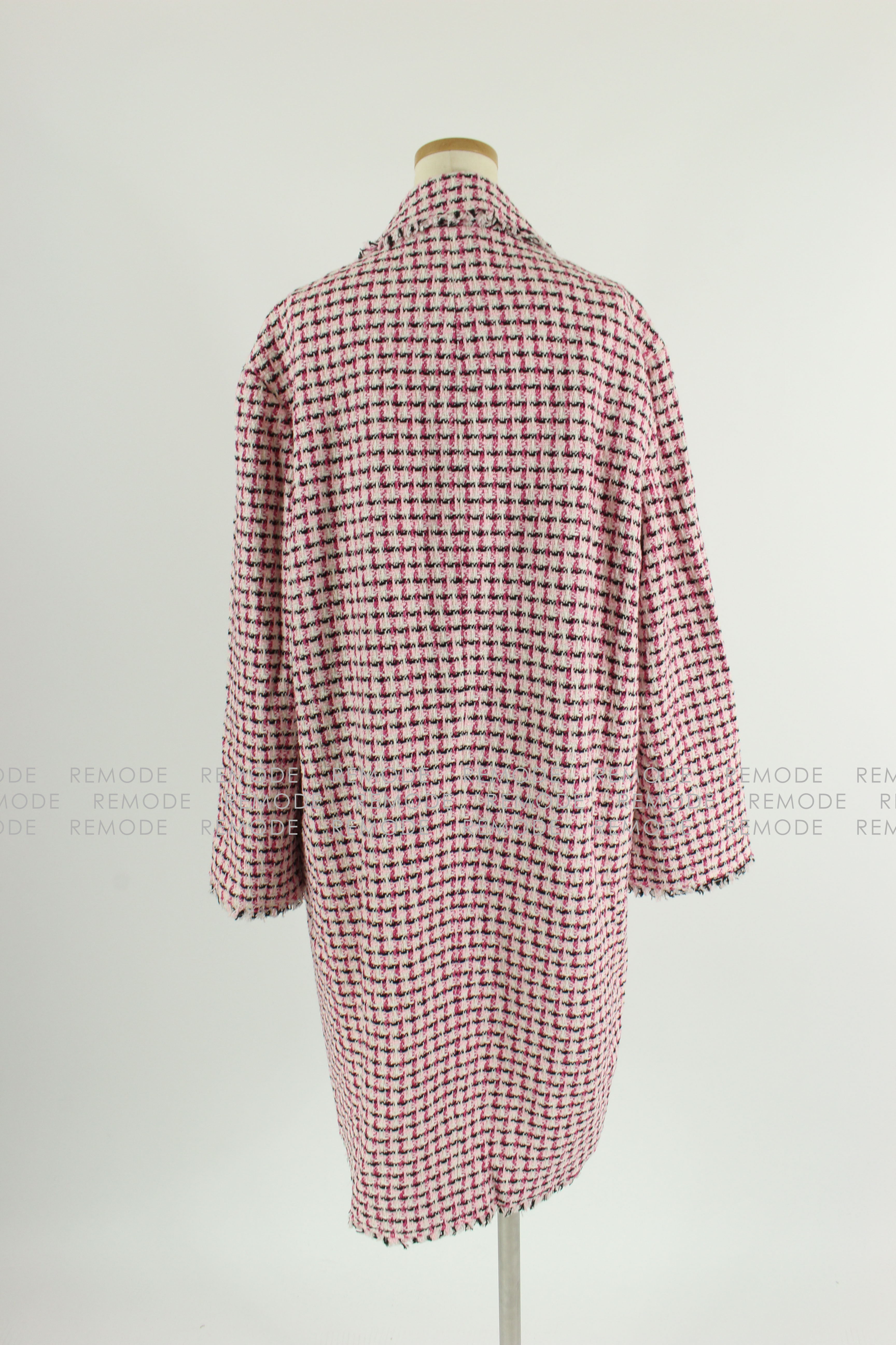 - ツイード柄がオシャレで目をひくロングコートです。大きめのサイズ感がすっぽりと包み込んでくれます。コロンとした丸ボタンがアクセントになります。