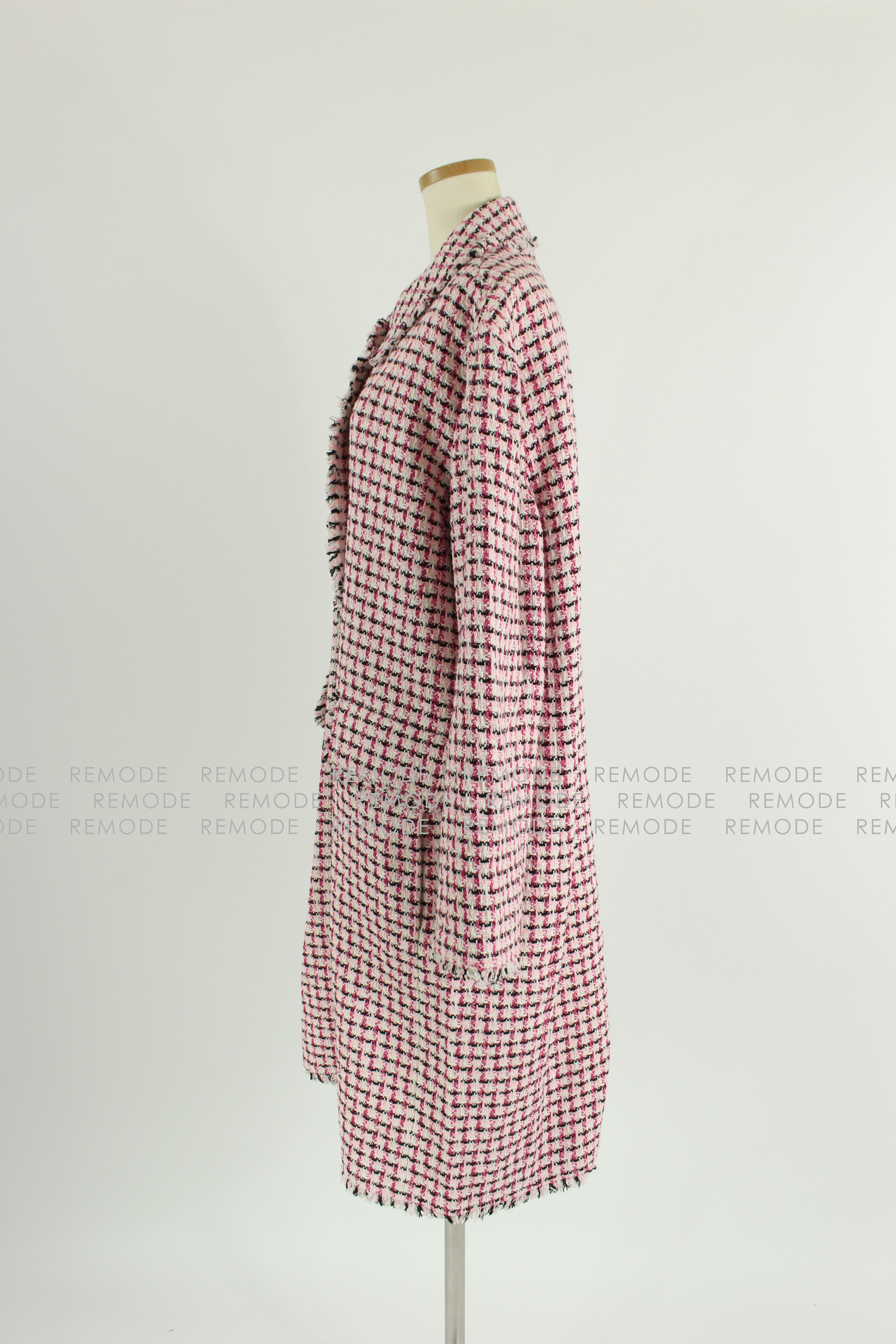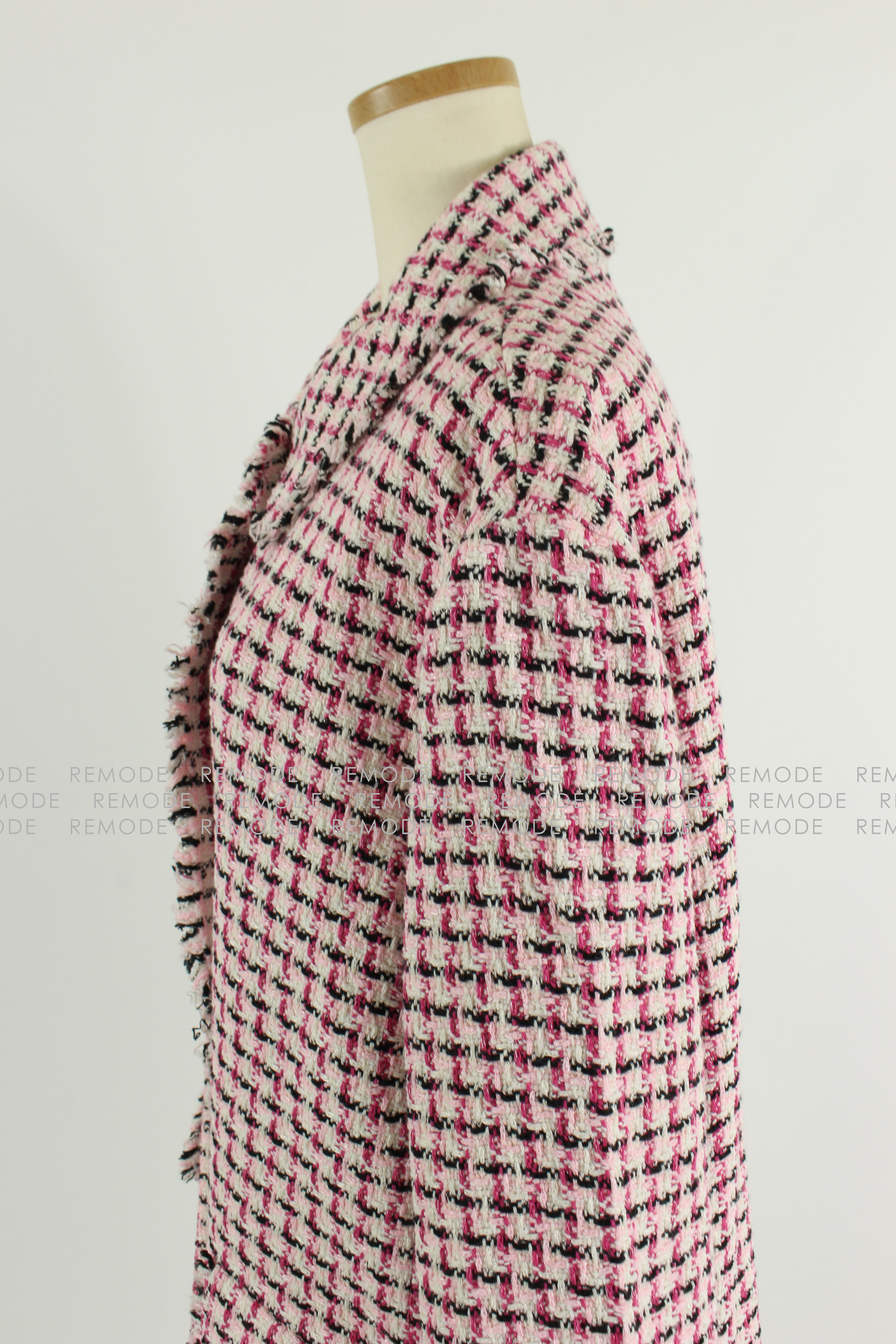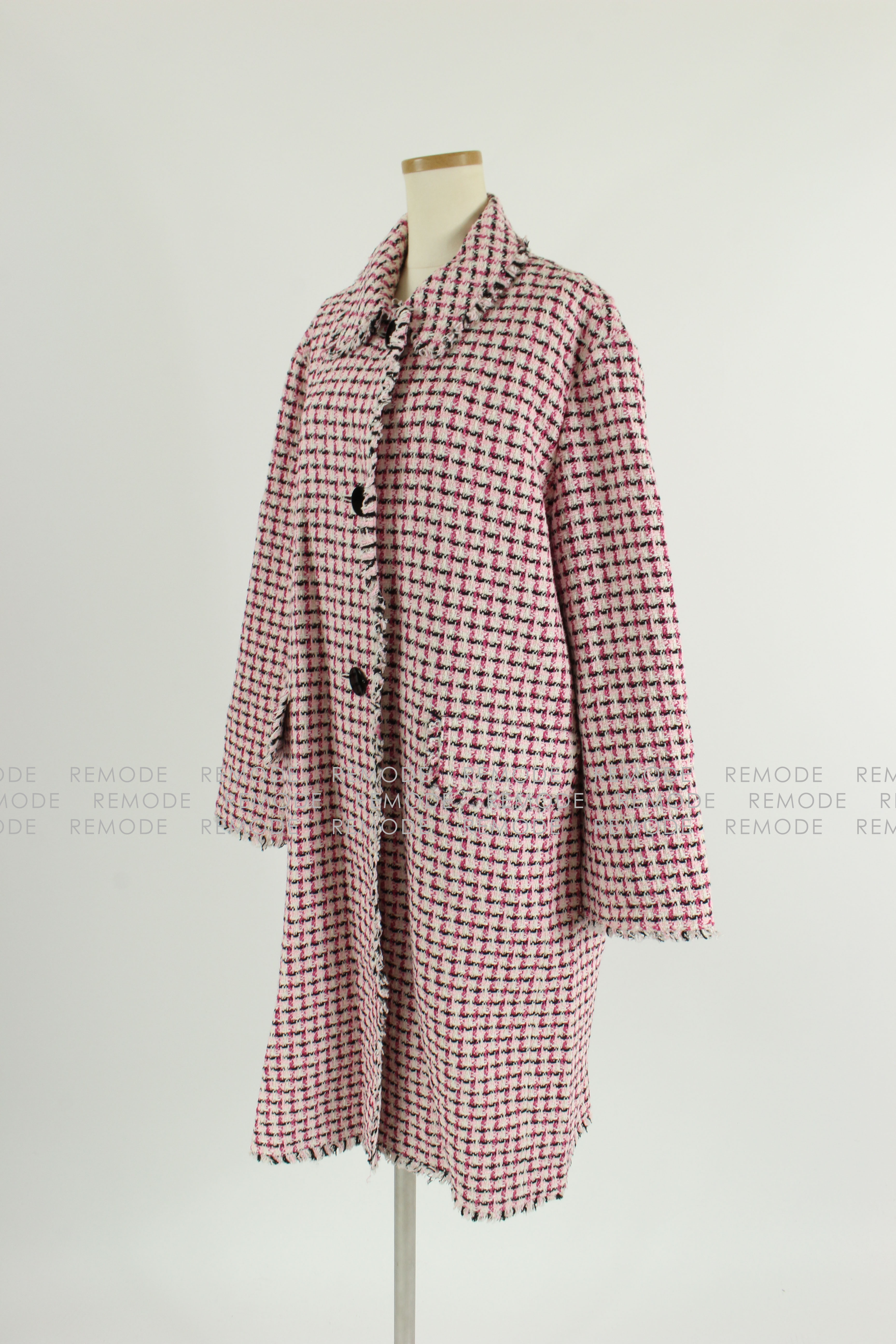 - ツイード柄がオシャレで目をひくロングコートです。大きめのサイズ感がすっぽりと包み込んでくれます。コロンとした丸ボタンがアクセントになります。