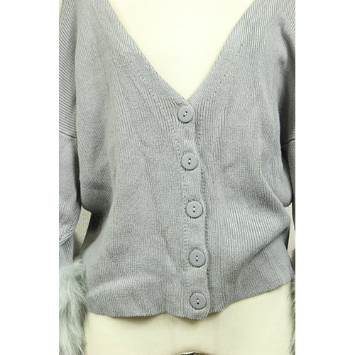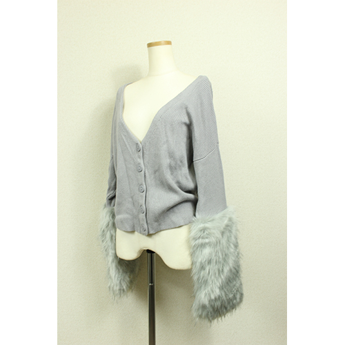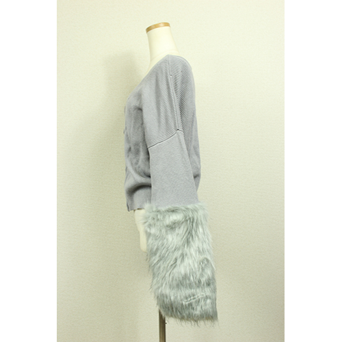 - 袖のボリュームフェイクファーがポイント。手首の華奢見せも出来ます。ざっくり開いたVネックデザインも特徴です。