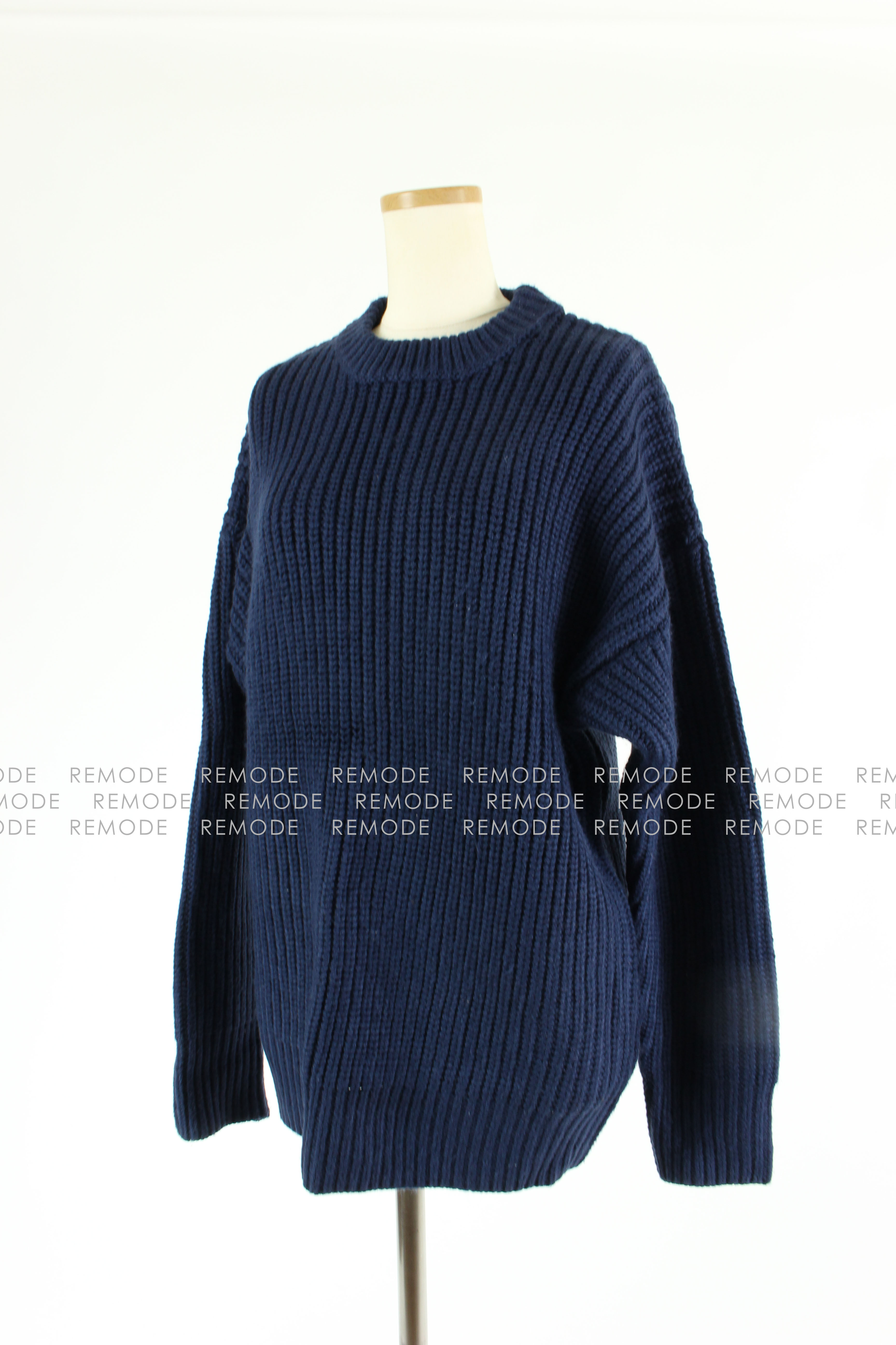ラウンドネックオーバーサイズニットです。しっかりした生地でシルエットが綺麗なのもポイント。ボトムにも合わせやすい丈感です。