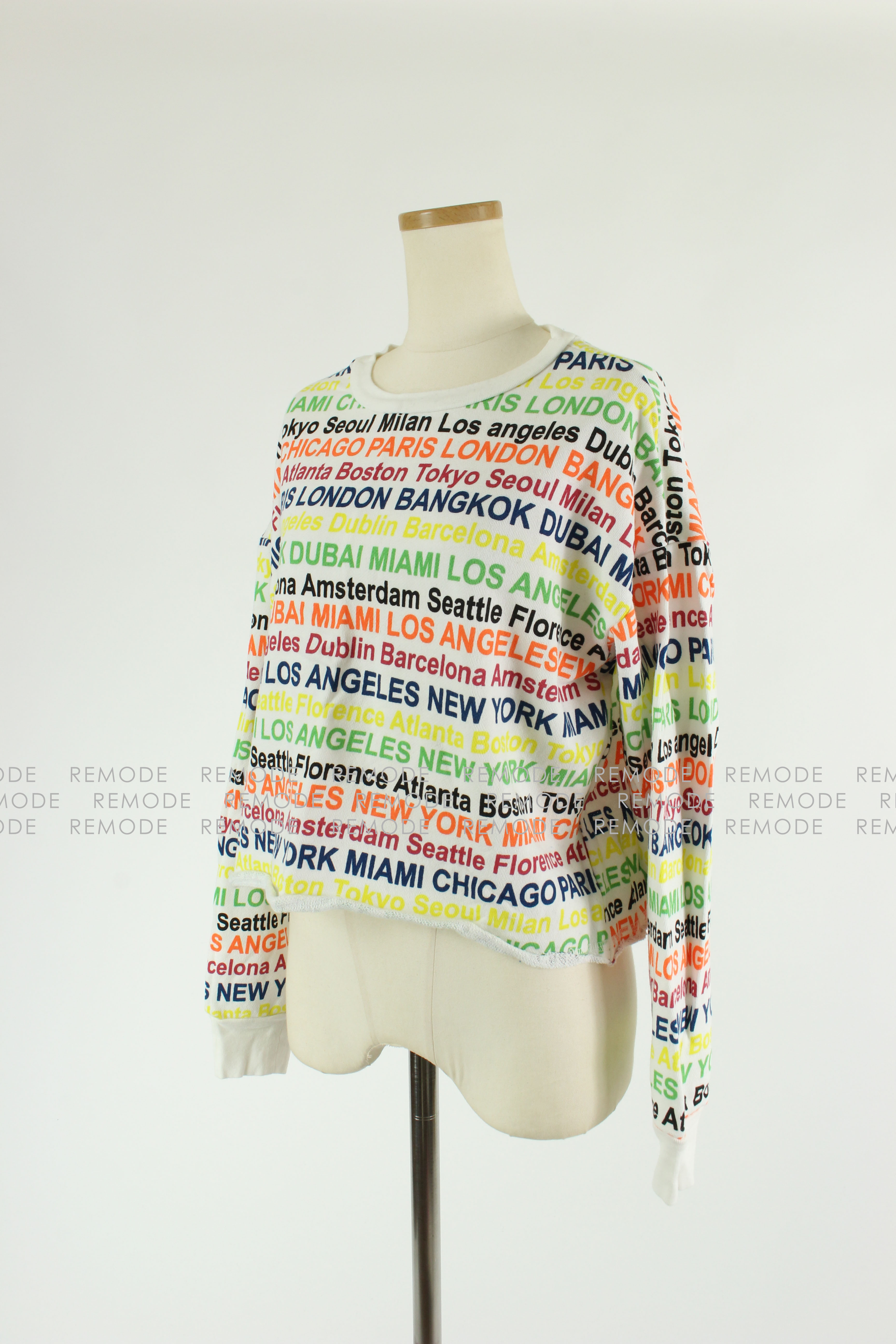 - 遊び心のあるボーダー英字プリントがアクセントのカットオフショート丈スウェットです。ショート丈かつ程よくゆとりのあるシルエットが、フェミニンな雰囲気を演出します。