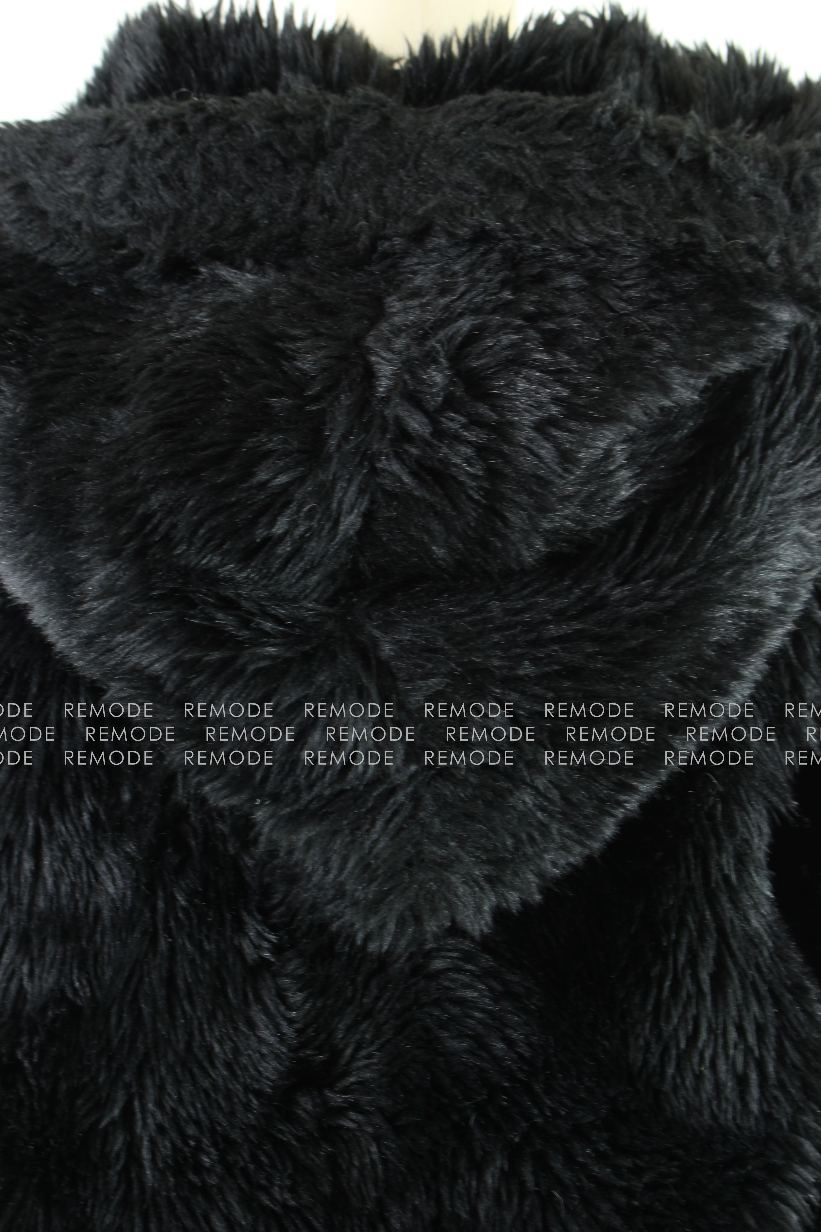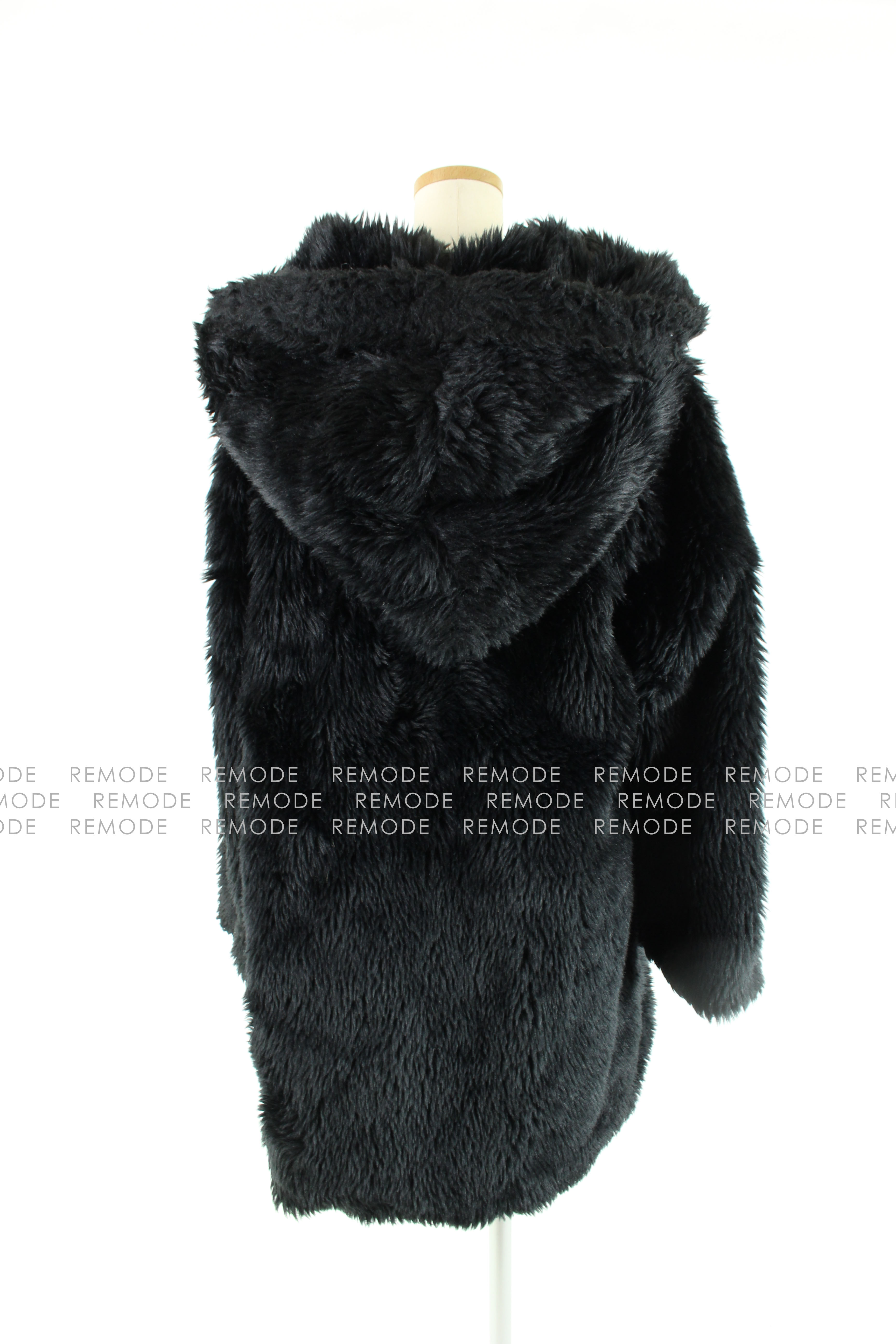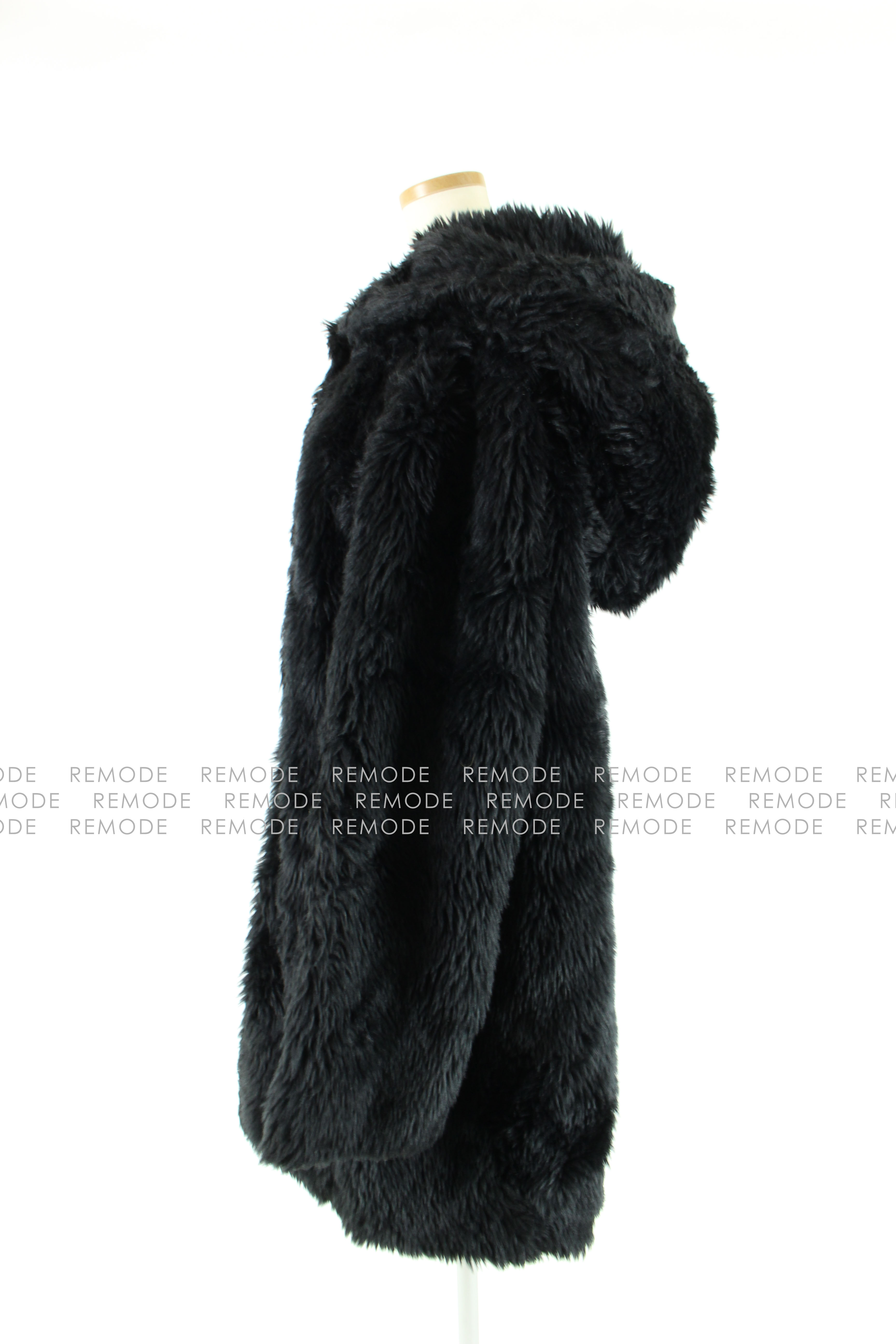 ボリュームたっぷりのフード付きボアコートです。少しだけフレアデザインになっているので女性らしい印象になります。