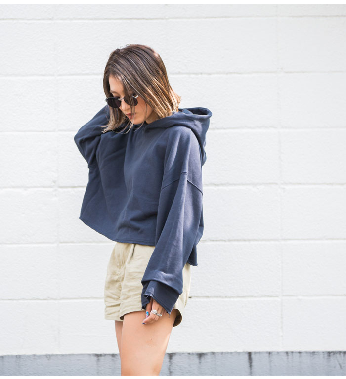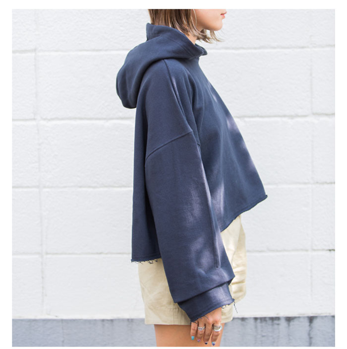 - クロップド丈のパーカーです。袖にボリュームがあり、コーディネートのアクセントにもなります。