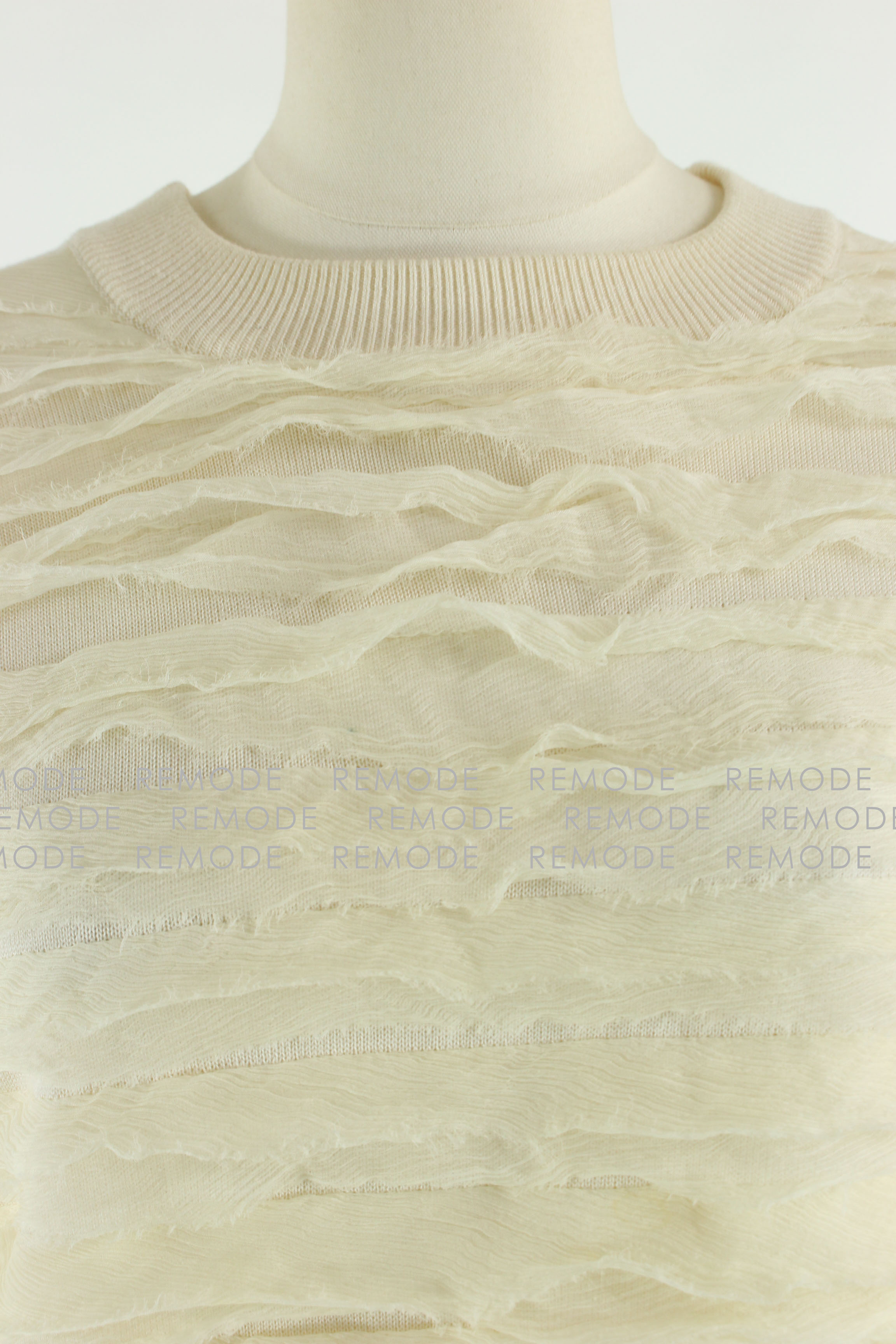- 胸元のデザインで大人な上品さを演出する、華やかな印象のクルーネックプルオーバーです。程よく身体にフィットするコンパクトなシルエットがポイント。飽きのこないベーシックなシルエットなので、どんなボトムスとも相性抜群。胸元のデザインが目を引くので小顔効果も期待できます◎
