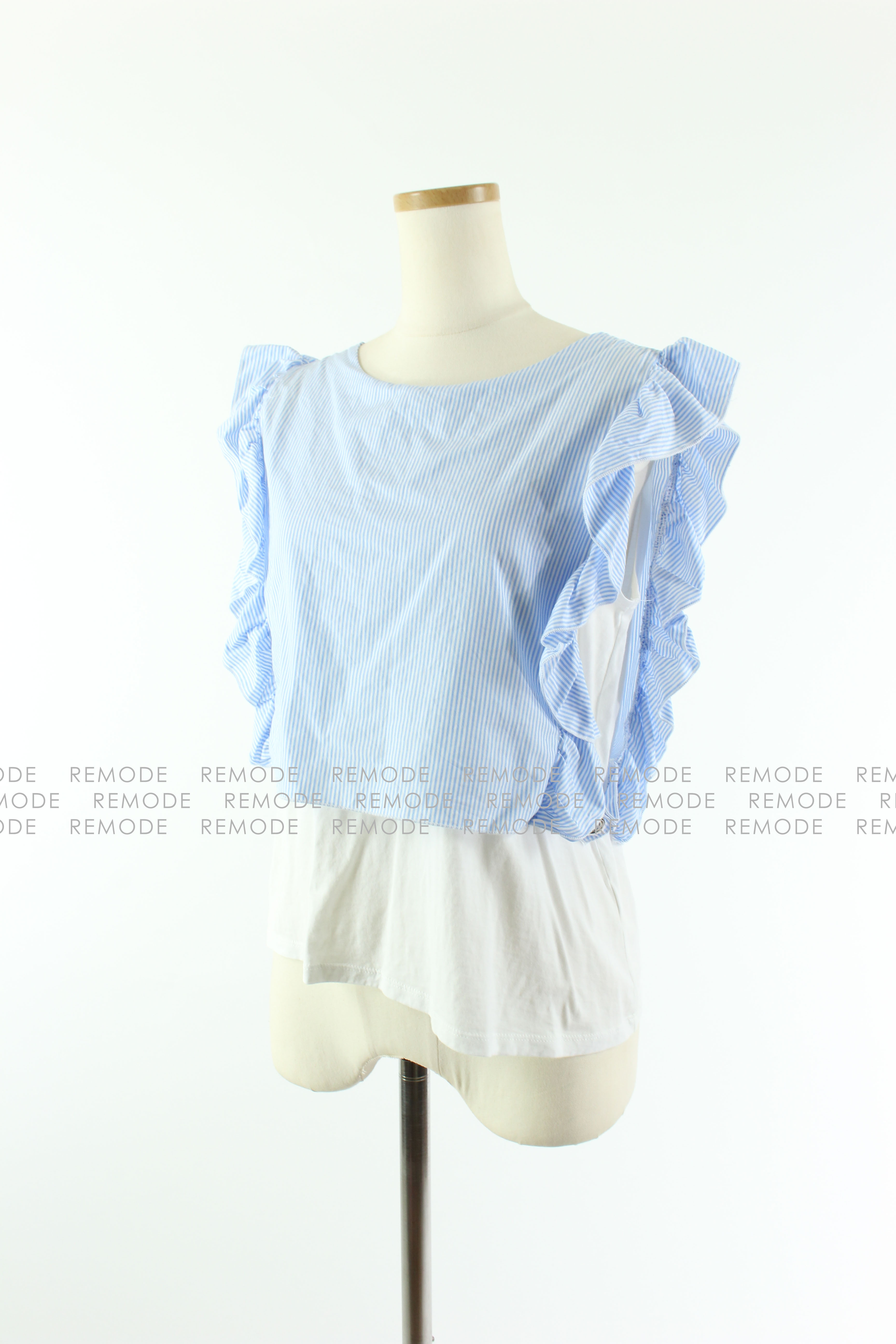 - ふんわりフリルスリーブがクラシカルなノースリーブブラウスとコットンインナーのレイヤードトップス。ブラウスの軽やかに揺らめく表情が、装いを女性らしく彩ります。おしゃれ上級なレイヤードスタイルが1枚で完成する優秀アイテムです。