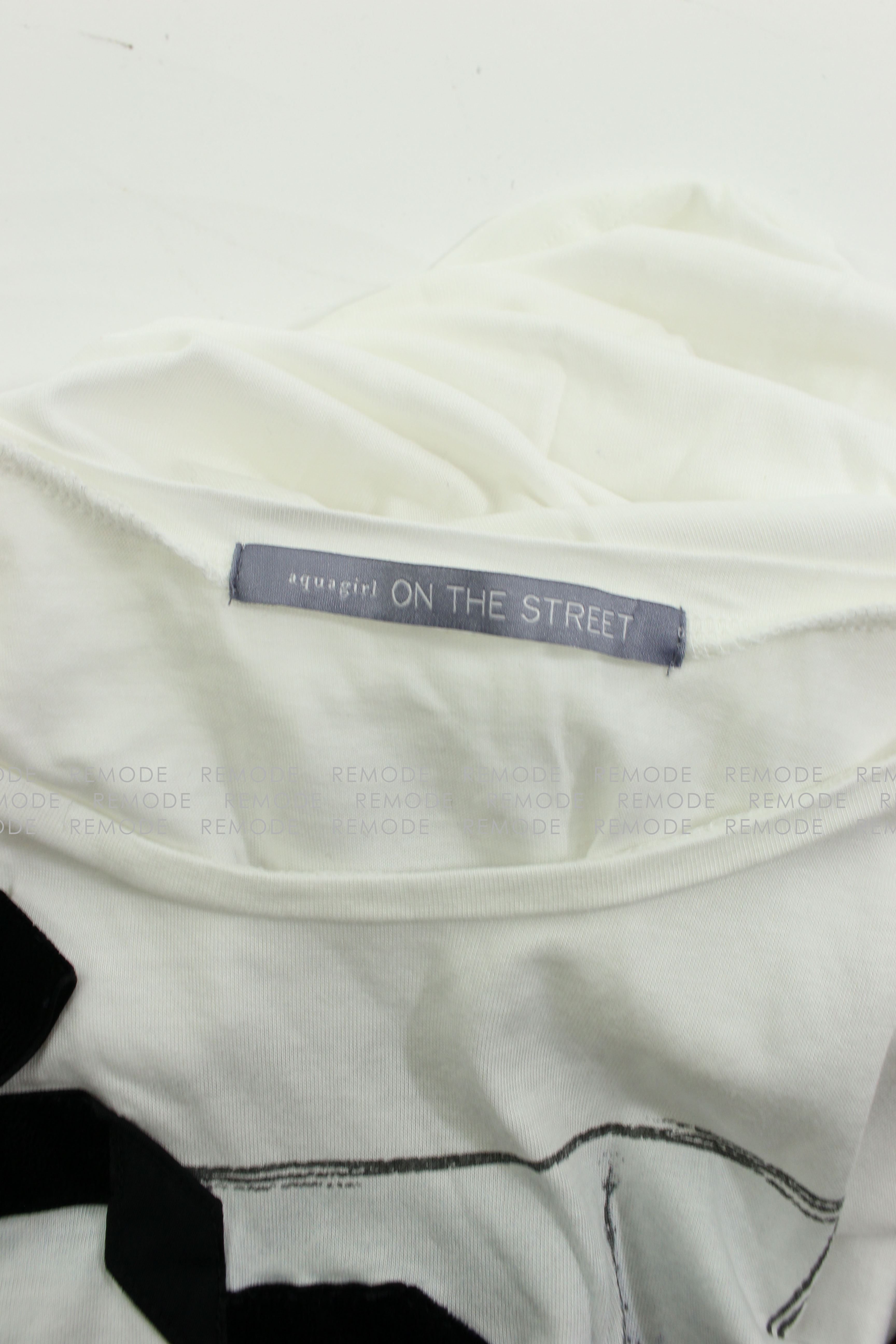 - 「aquagirl アクアガール」の妹ブランド「aquagirl ON THE STREET アクアガールオンザストリート」のおしゃれなTシャツが出品されました。ベロア素材のリボンがワンポイントとなり1枚で様になります。リヨセル100%ですので着心地も柔らかく肌になじむ優秀アイテムです。