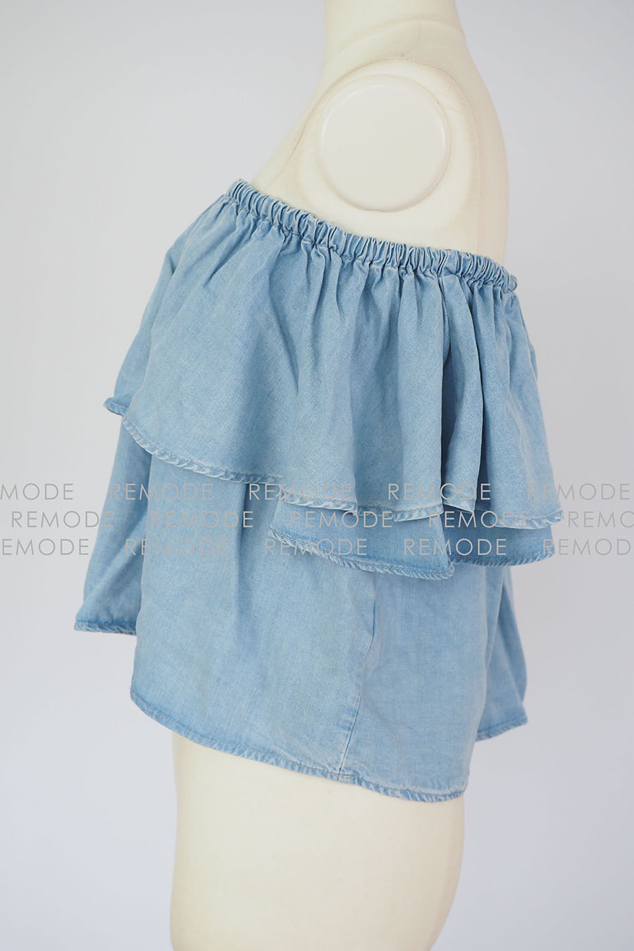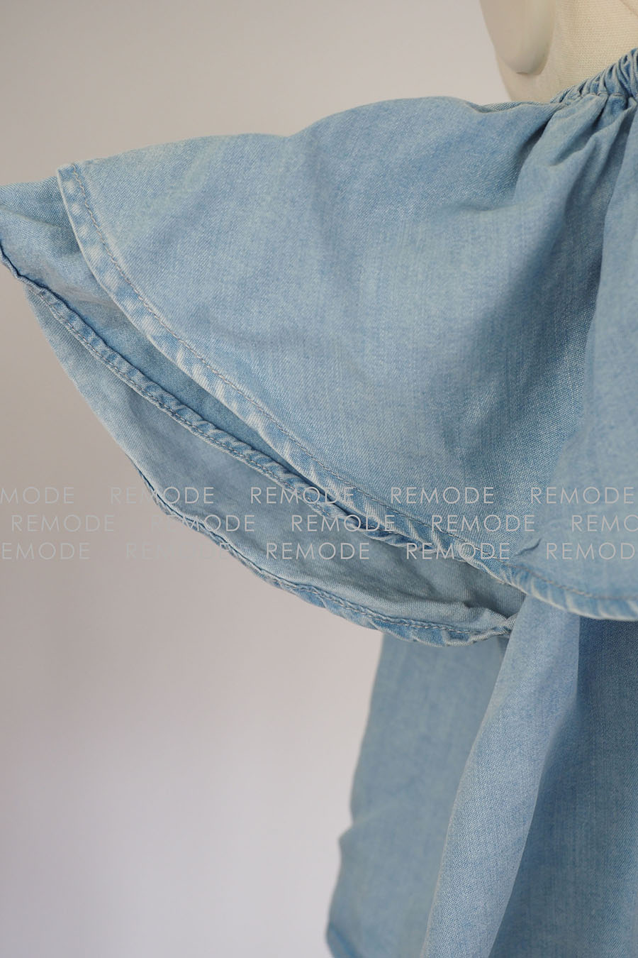 - ふんわりとしたフリルを重ねたオフショルデザインのブラウスです。肌に映える明るいデニムカラーがトレンド感をさらにアップさせます。オフショルのスリーブが気になる二の腕を華奢に見せてくれる嬉しい効果も。パンツと合わせてカジュアルに、スカートと合わせてフェミニンにと、様々なスタイリングをお楽しみ頂けるアイテムです。