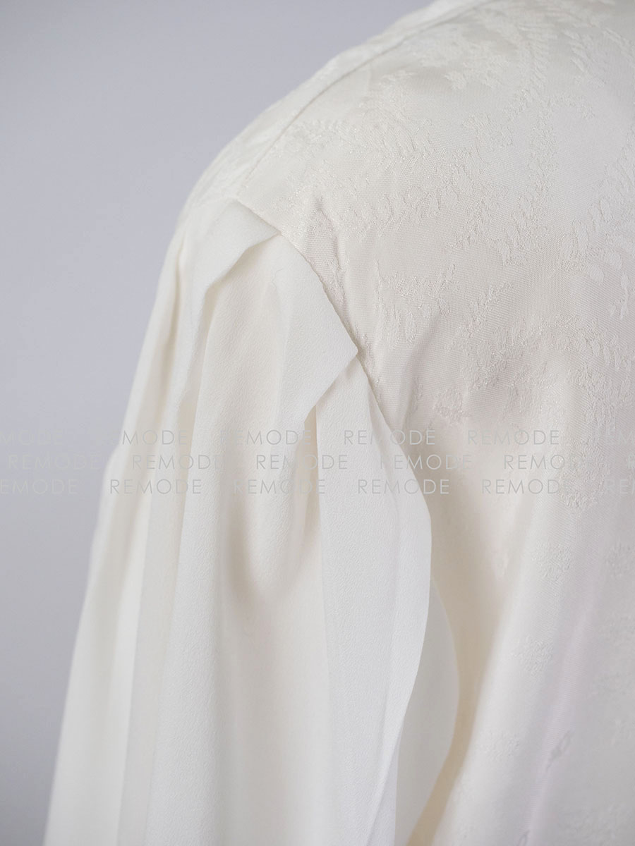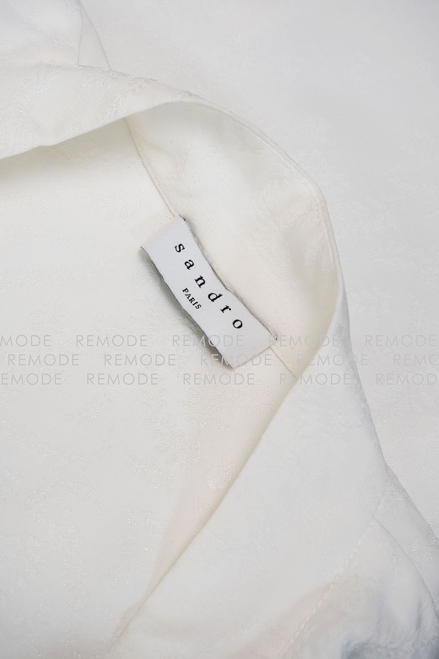 - 世界中の大人女性を魅了してやまない「sandro サンドロ」より、圧巻の刺繍デザインがポイントのシャツが出品されました。シャツ全体に施された繊細な刺繍は流石の一言。職人技からなるその刺繍から、ひと目でハイブランドと分かる上質な逸品。レーヨン生地は最高の肌触りをそのままに、程よい厚さで更に上品さを演出します。同素材のタイは画像のようなリボン結びをはじめ、ひと結びやそのまま下に垂らすなど、その日のコーディネート に合わせてスタイリングが可能です。