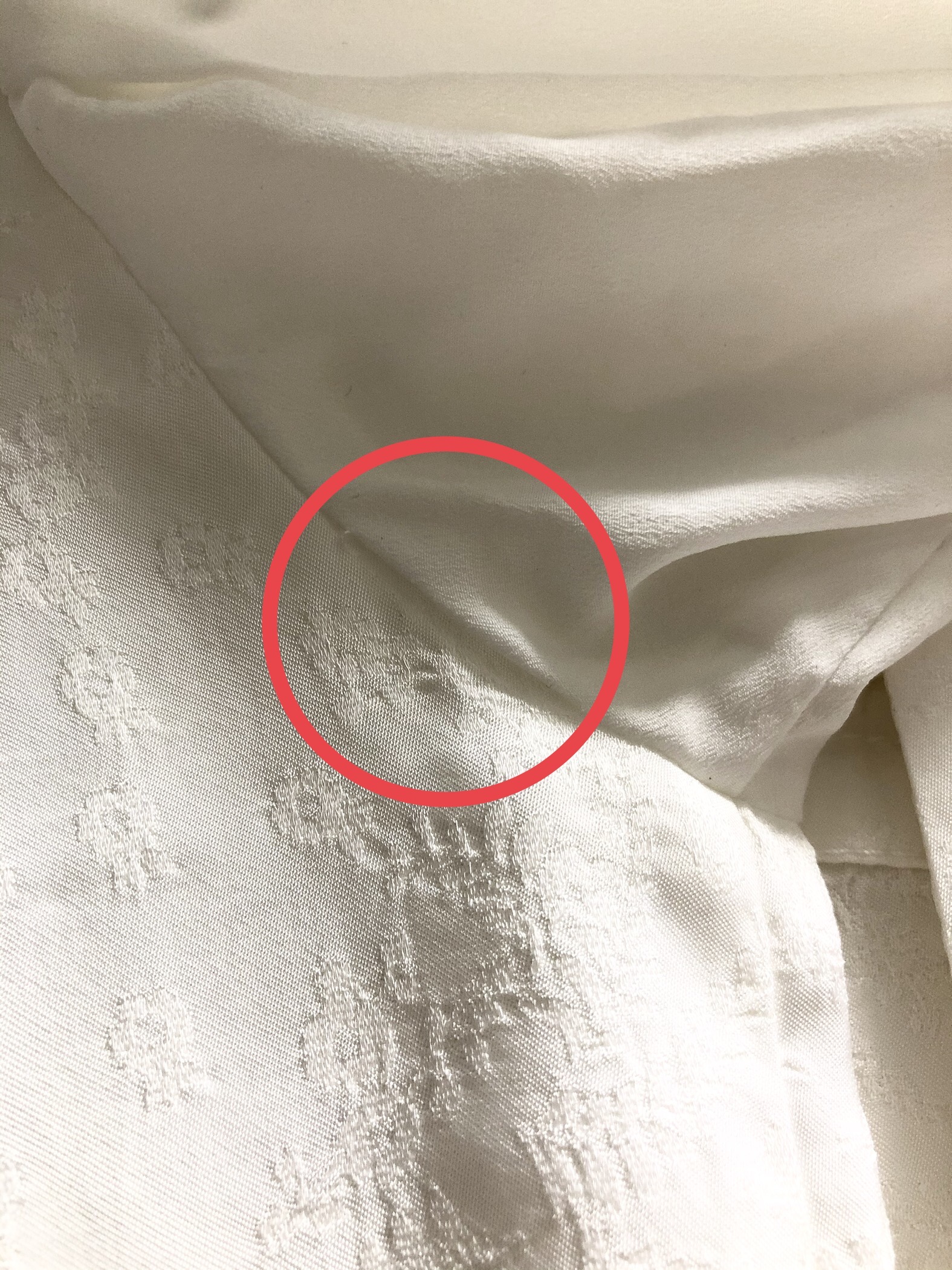 - 脇の下に小さな縫い目のほつれがございます。生地自体は奥でつながっているので穴などは見受けられずご着用には影響致しません(画像13枚目参照)
