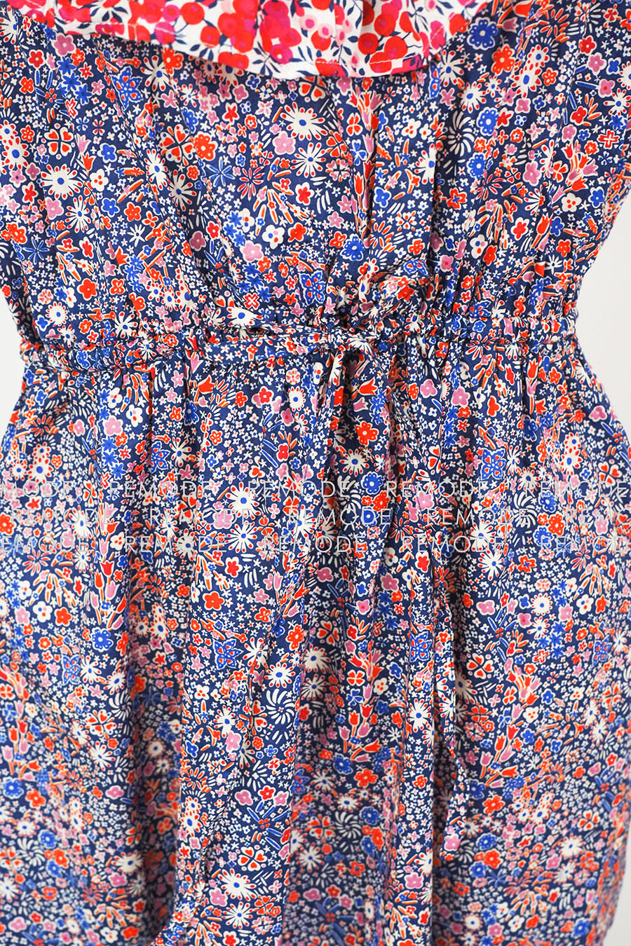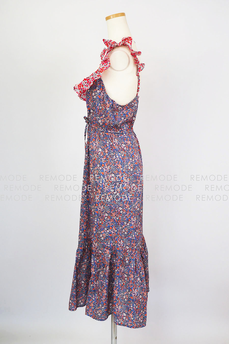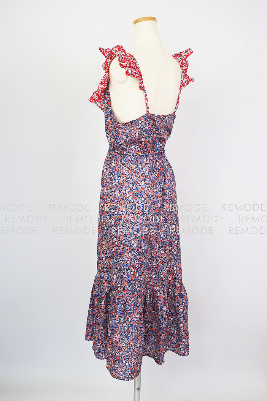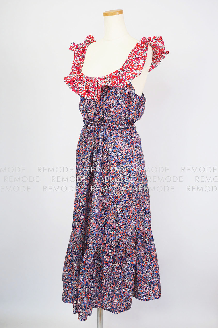 - マルチカラー配色のフラワープリントがレトロな雰囲気のワンピース。デコルテが綺麗に見えるデザインで爽やかさを演出。コットン素材かつゴム仕様のウエストで着心地も快適。細かな柄感なので主張しすぎず、程良い華やかさを演出してくれます。