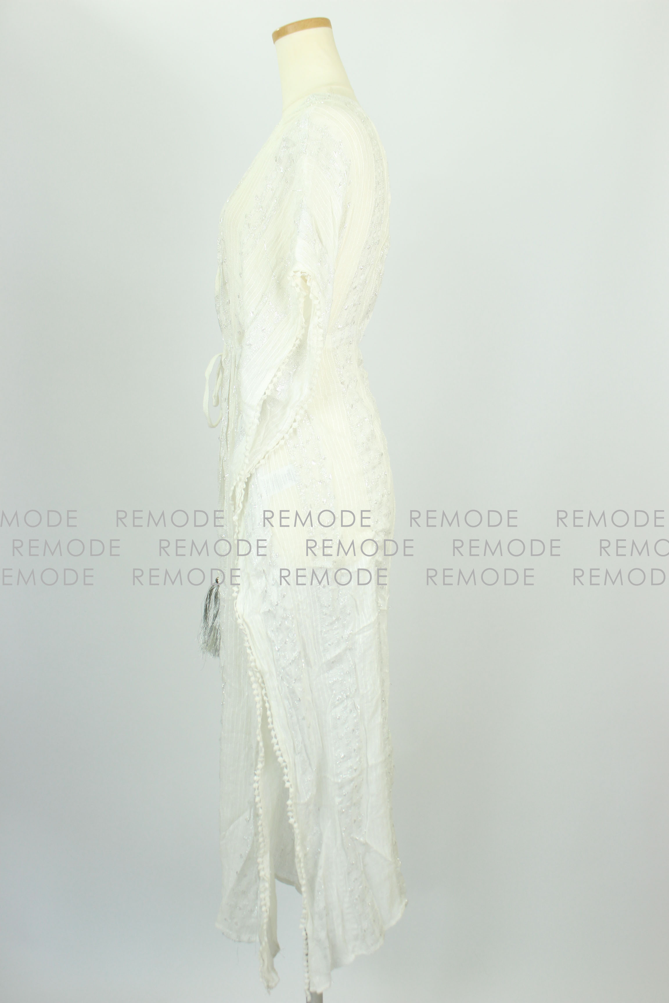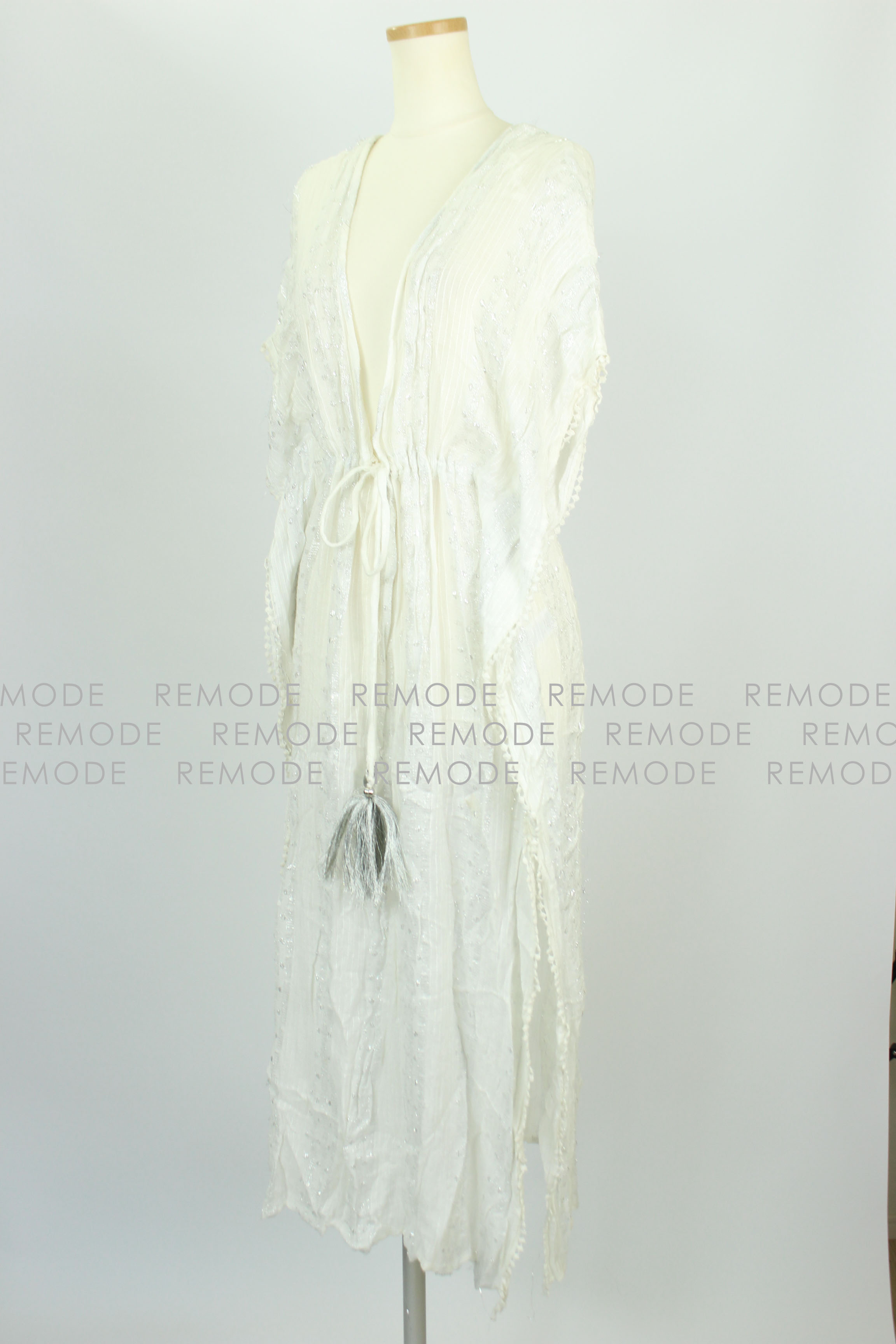 - エスニックと和を融合した、まさにオリエンタルなデザインのワンピースが登場です。キモノワンピースと呼ばれるシルエットで、オリエンタルでモダンな雰囲気を演出します。モダン柄のキモノ・スリーブワンピース。全体に折り込まれたシルバーの糸がデザインに深みをプラスし、艶やかさを演出します。さらりと肌ざわりの良い涼やかな素材感。オーバーサイズでゆったりとご着用いただけます。