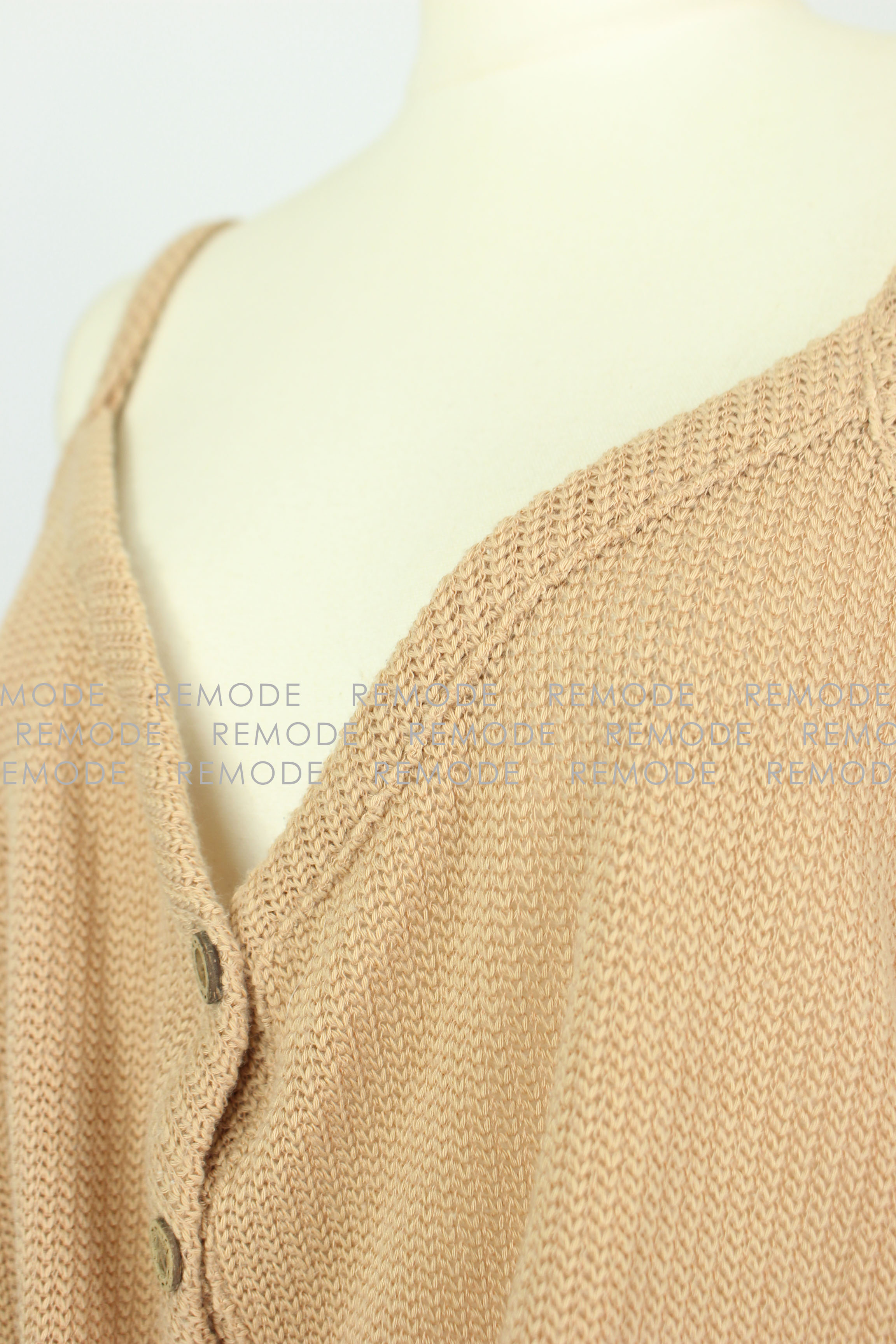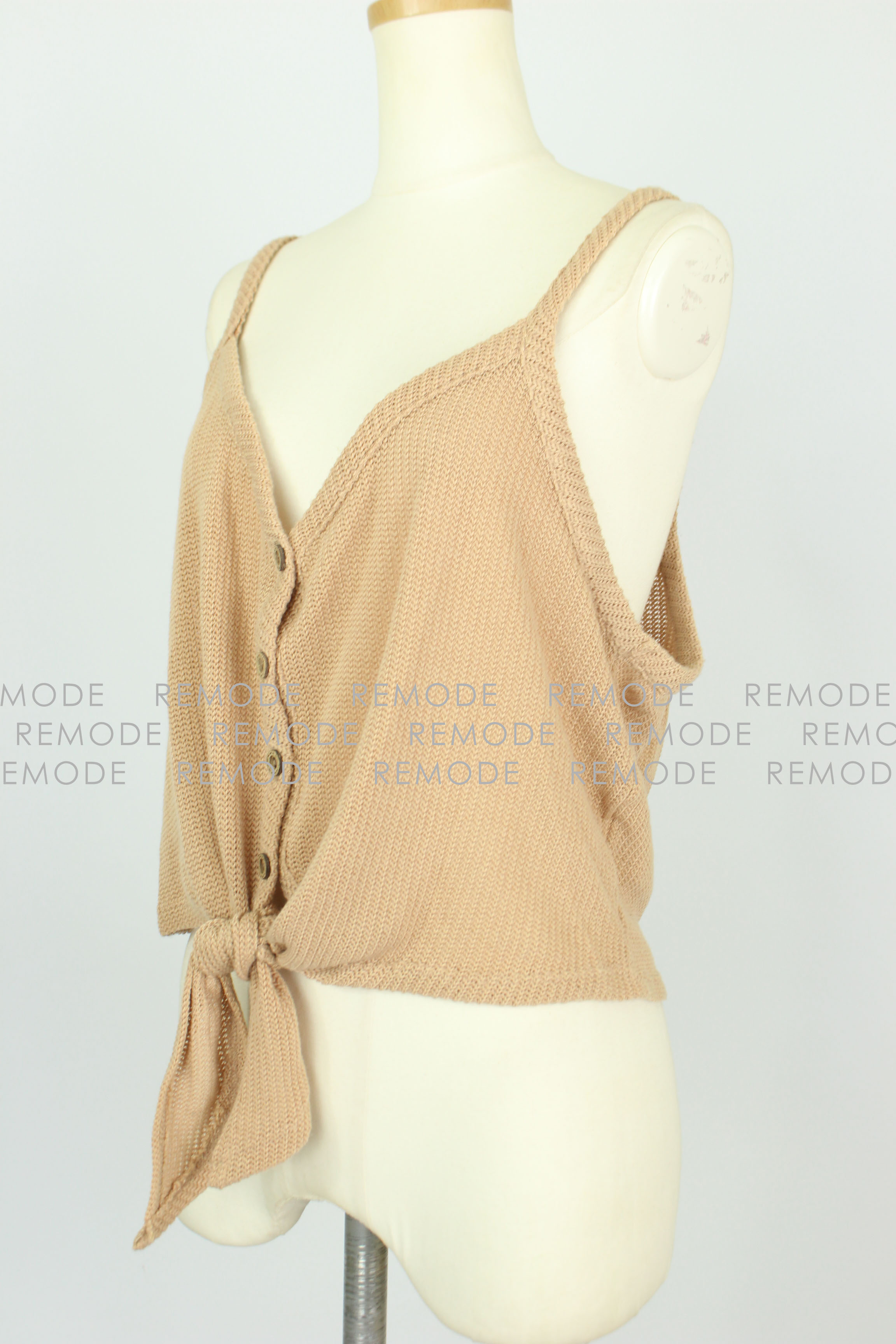 - フロントボタンとリボンが目を惹く、サマーニットキャミソールです。暑い季節は1枚で、他の季節はインナーとしても活用できる、通念ヘビロテ間違いなしの1枚です。