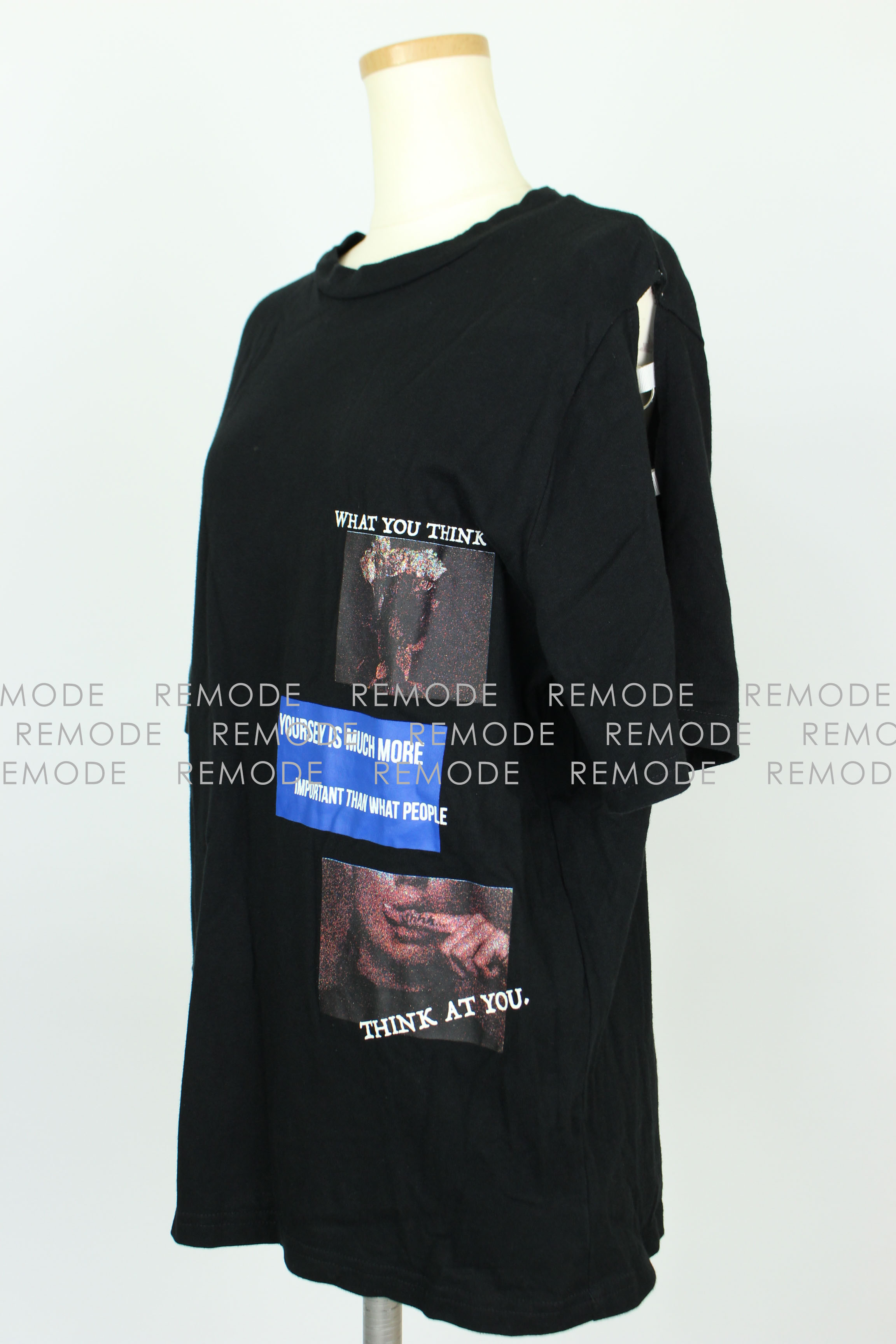 - オープンショルダーがベルトデザインになっている、おしゃれなTシャツの登場です。コットン100%の柔らかな生地はストンと落ちる質感なので、美シルエットを保ちます。ランダムなプリントピクチャーもデザインポイント。カジュアルやロックなデイリースタイルに大活躍する1枚です。