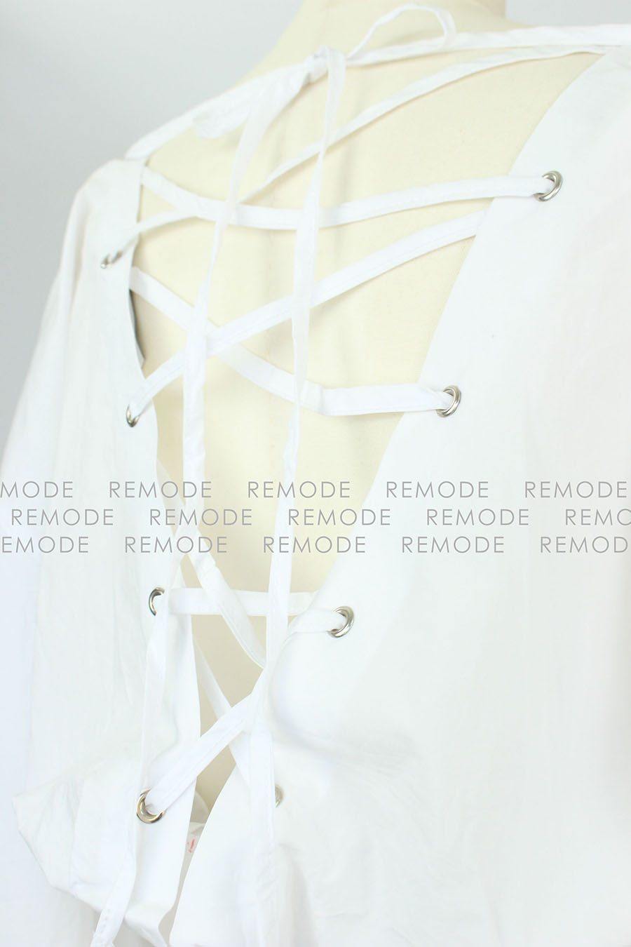 - 背中のレースアップが目を惹くおしゃれなカットソーの出品です。Vラインにデザインされた背中の開き具合は、ウエストのメリハリラインを強調してくれます。フィットしすぎないカットソーラインと、キュッと引き締まったギャザーウエストが、メリハリのあるボディラインを演出。シンプルながら技ありのバックシャンデザインで、どんなスカートやパンツでもこなれた雰囲気にアップグレードするアイテムです。