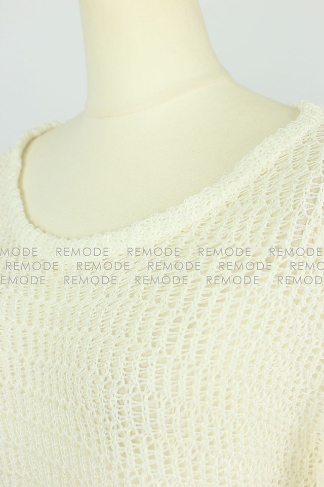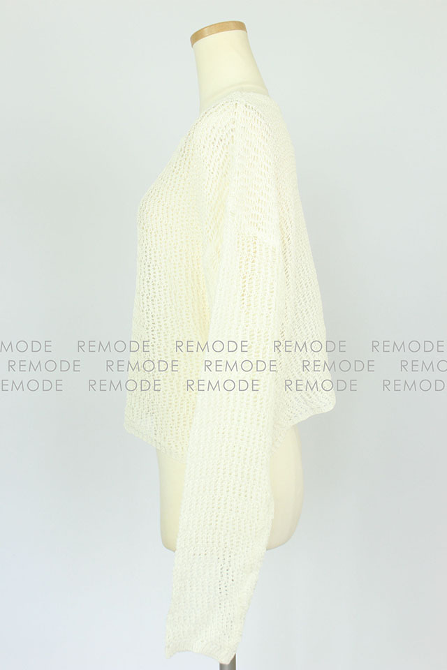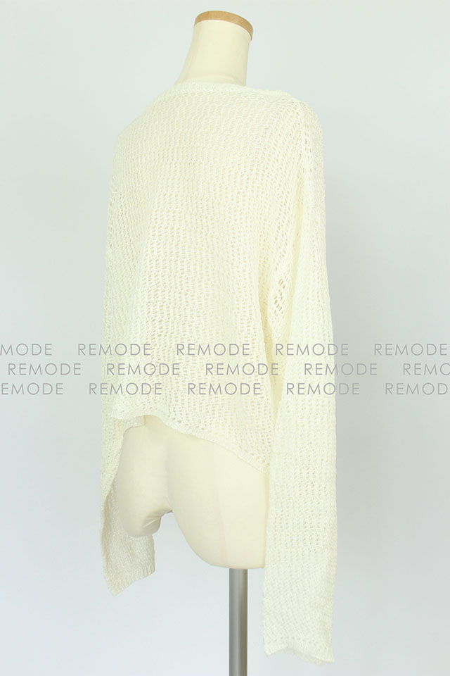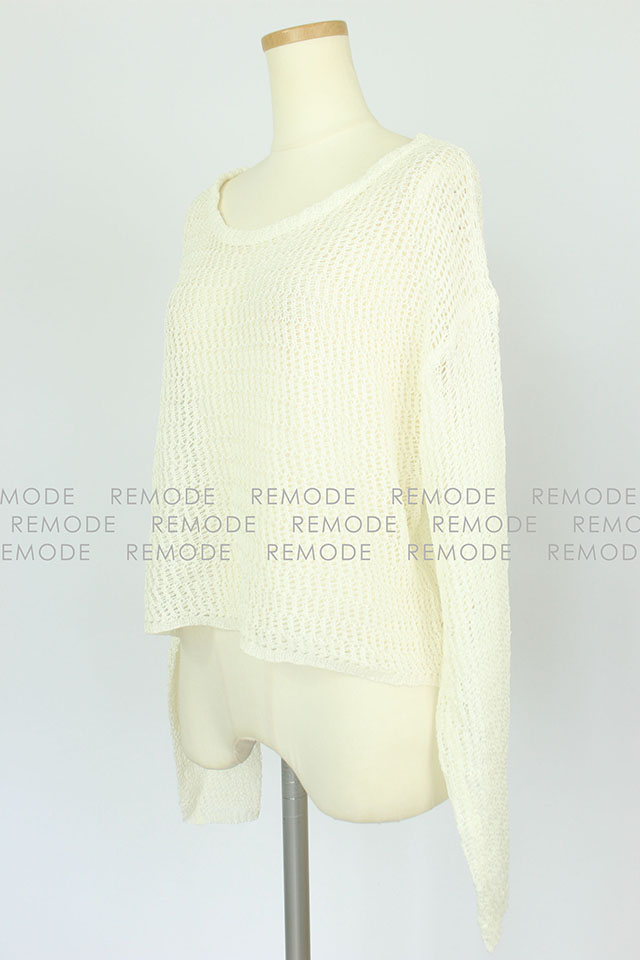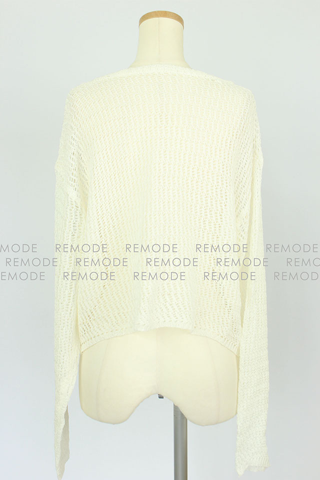 - シースルーデザインがポイントのスタイリッシュな印象のニットトップスです。伸縮性に優れた柔らかな素材で着心地抜群。オーバーサイズでゆったりと着てもジャストサイズで着てもキマる実用的なデザインです。ミモレ丈と手の甲全体を覆う長さの袖丈が、絶妙なバランスで腕を長く演出してくれます。季節の変わり目に大活躍する便利ニットです。
