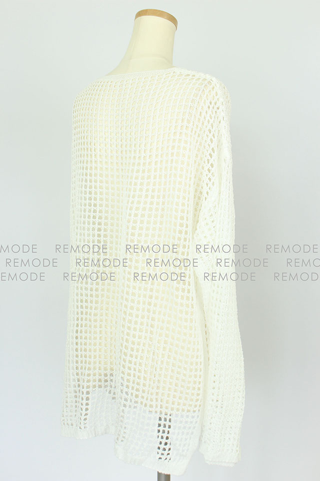 - シースルーデザインがポイントのスタイリッシュな印象のニットトップスです。ややハリのある生地感ながら、伸縮性に優れた柔らかな素材で着心地抜群。ルーズなシルエットで体型をカバーしながら、Fluggeらしいこなれ感のある着こなしが完成します。季節の変わり目に大活躍する1枚です
