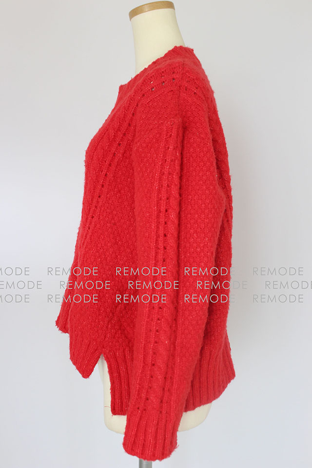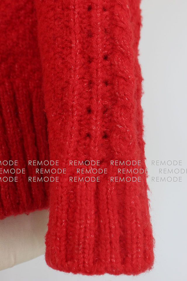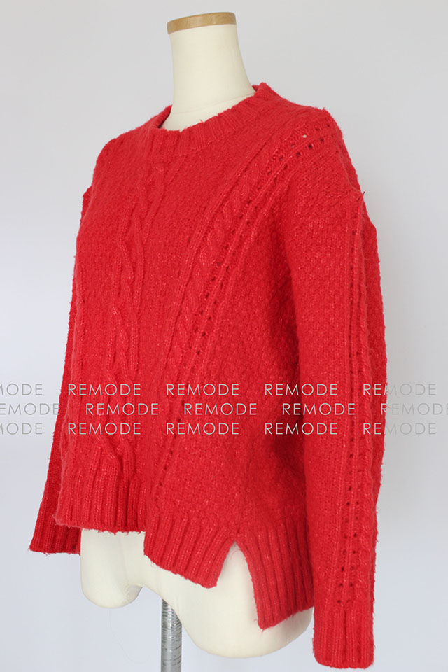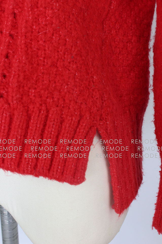 - ショート丈とボリューミーなシルエットが好バランスのローゲージニットが登場です。ホリデーシーズンにぴったりのレッドカラー。ざっくりと編まれたケーブル編みのローゲージニットは絶妙なふんわり感◎裾のスリットでボリューミーなボトムスとも好相性です。