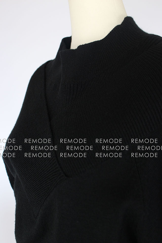- ハイネックのノースリーブリブニットワンピースに、フロントにのカシュクールのレイヤードが施された、デザイン性の高いワンピースです。オフショルはご自身で調整が可能ですので、ヘルシーな肌見せが叶います。