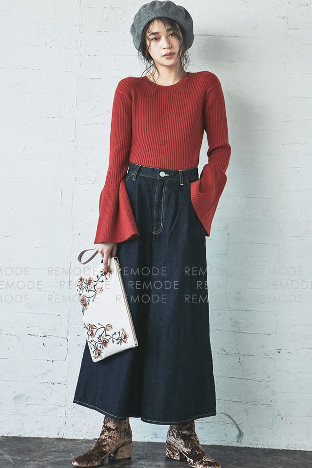 - 広がったスリーブシルエットがキャッチーなニットは、リブ編みも今年らしいトレンド感のある1着。コンパクトなサイジングなのでワイドパンツやオールインワンのインスタイルがオススメです。