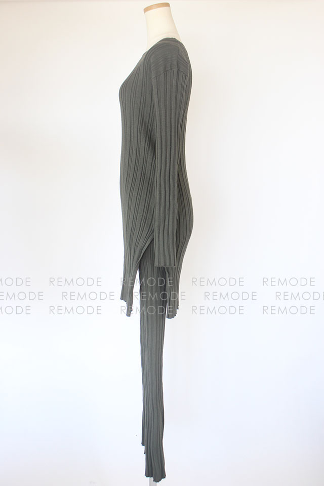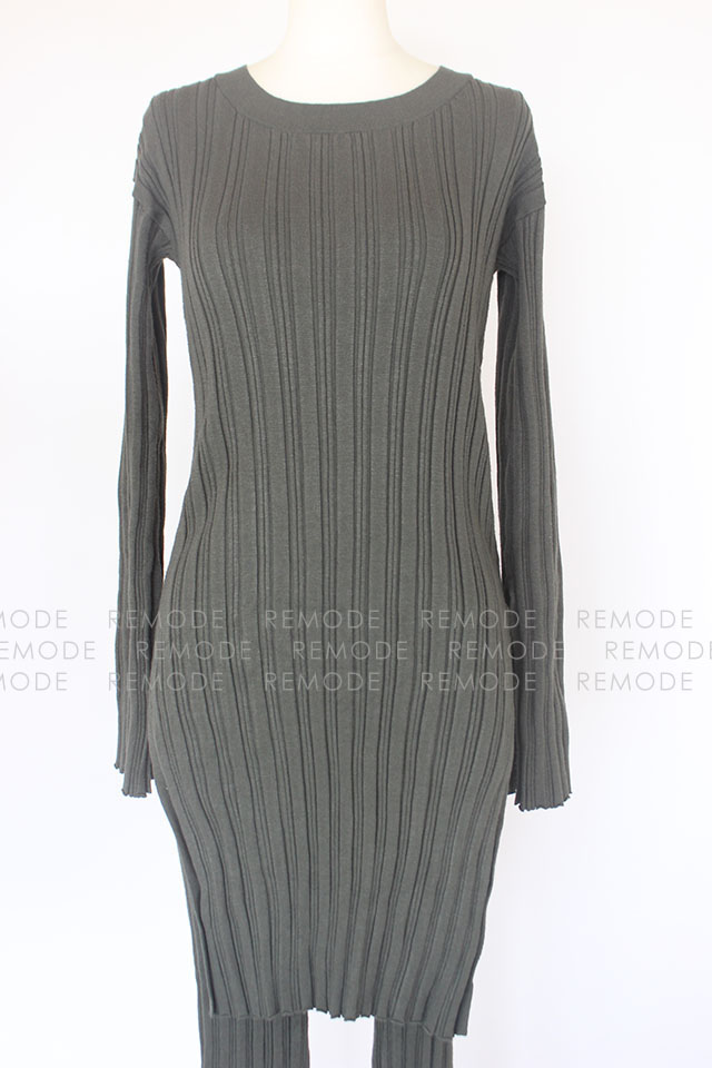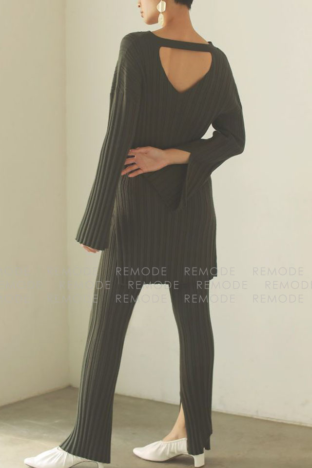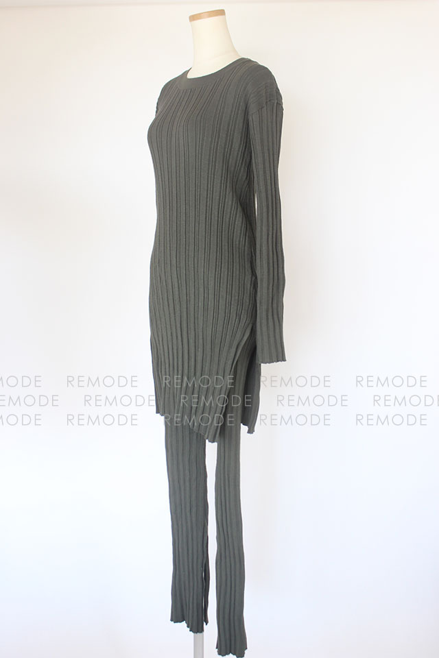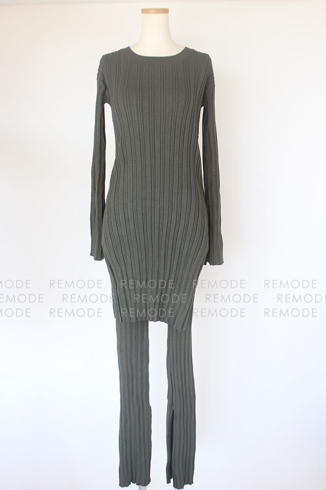 - ランダムリブのニットチュニックとパンツのセットアップ。 タイトなシルエットと縦ラインを強調するリブ編みで、すっきりとした縦長ラインなシルエット。 裾や袖口のスリットが程よい抜け感を演出します。 セットアップスタイルはもちろん、別々でも着回し可能なのでスタイリングの幅が広がるオススメの一着です。