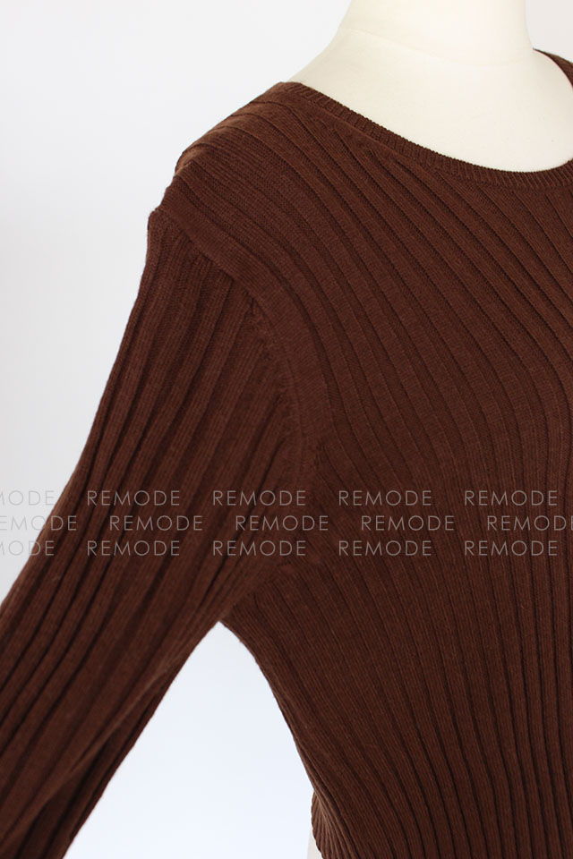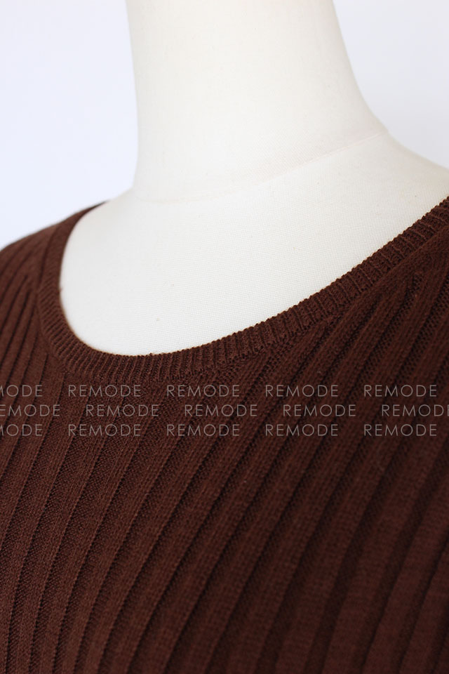 Fluggeサンプル|Uネックミモレ丈リブニット BR