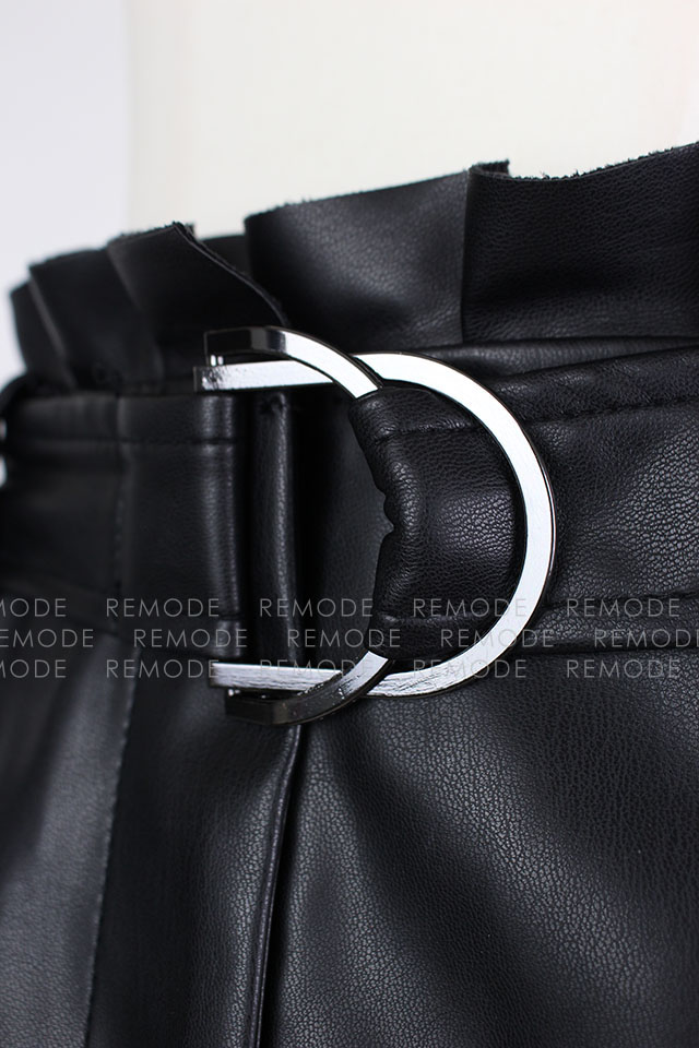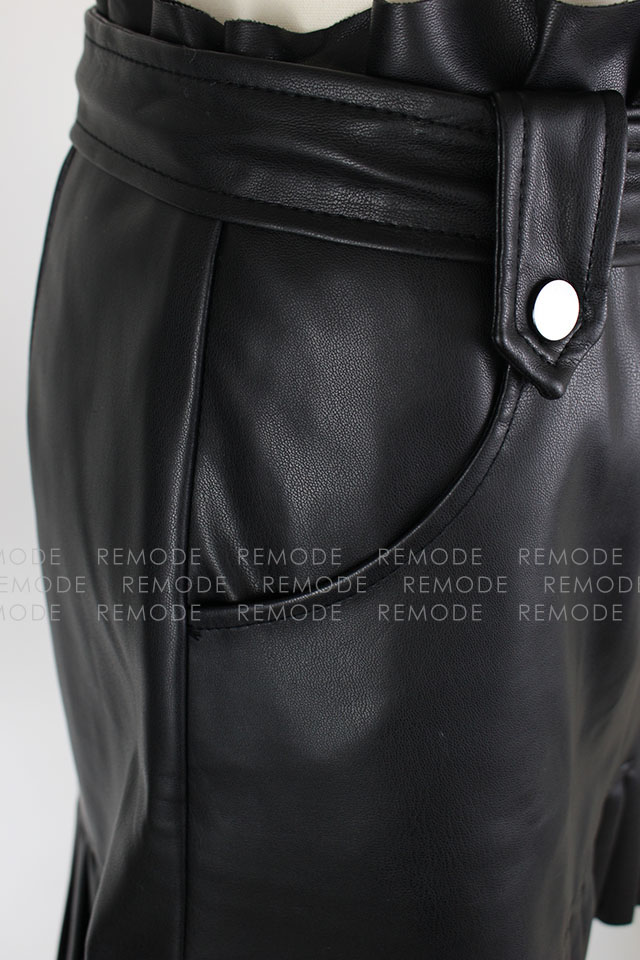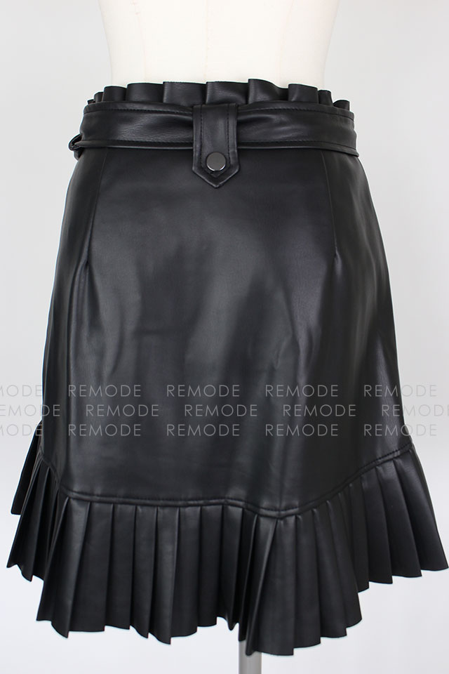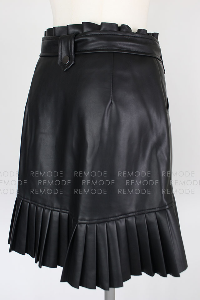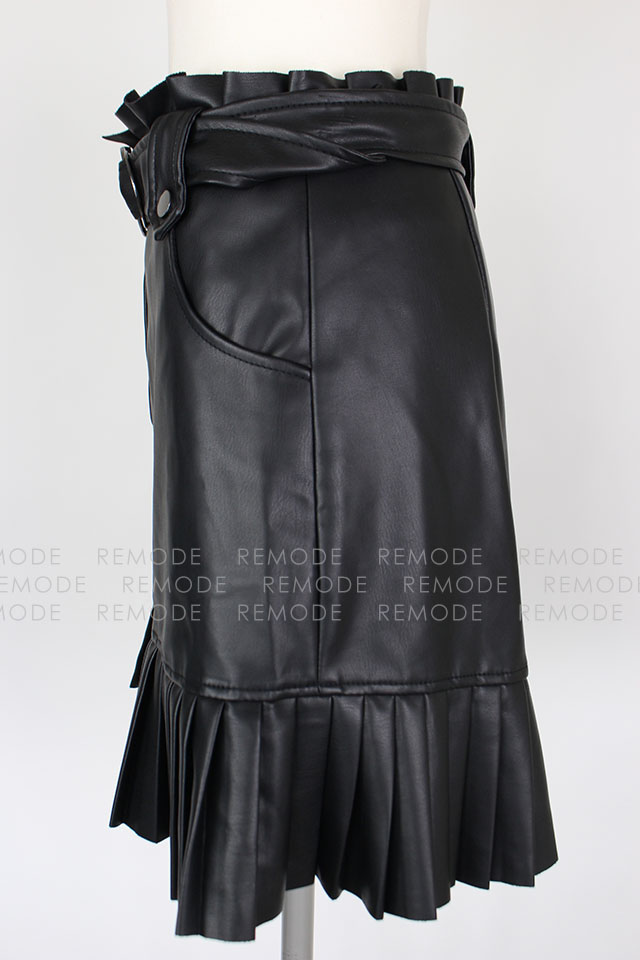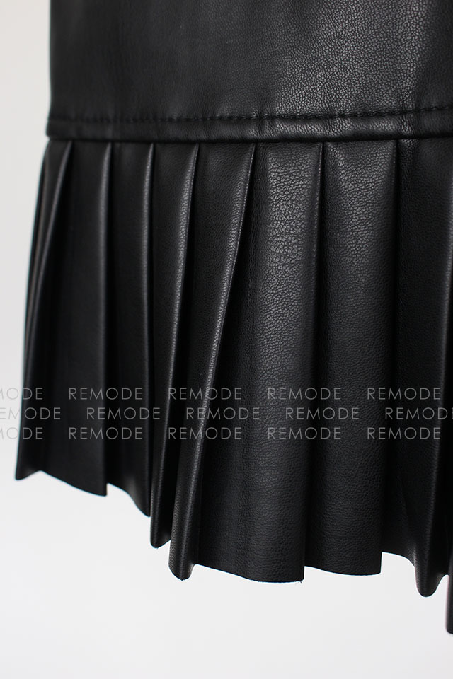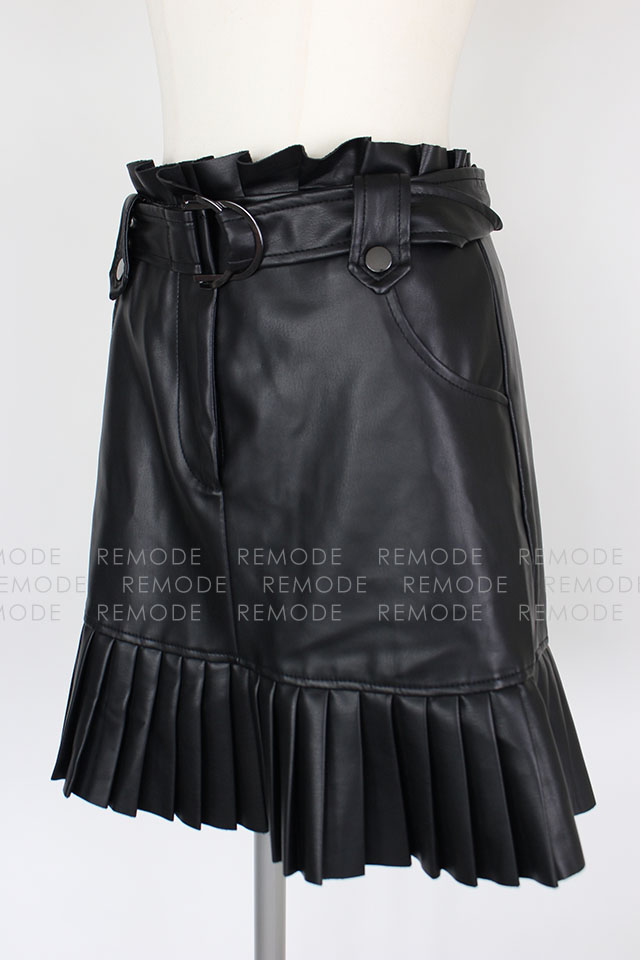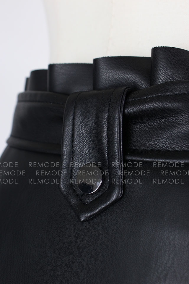 - エコレザーにプリーツとフリルがの組み合わせがベストマッチしているおしゃれなミニスカートの登場です。ウエスト周りにフリルがあしらわれているので、トップスインもスッキリ決まる優秀な一枚。通年ご着用いただける着回し度抜群な一枚です。