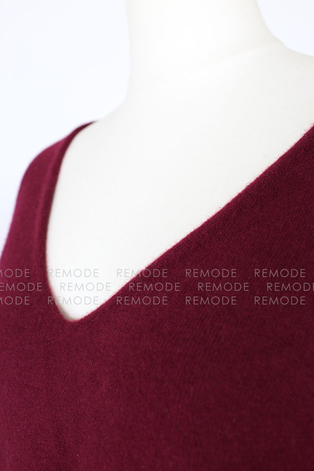 - すっきりと広く開いたVネックに、大人の女性らしさが薫るニット。 高級ウール糸を使用し、素材選びにもこだわったアイテムです。
