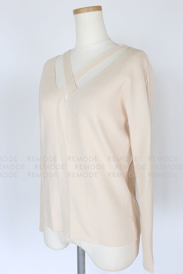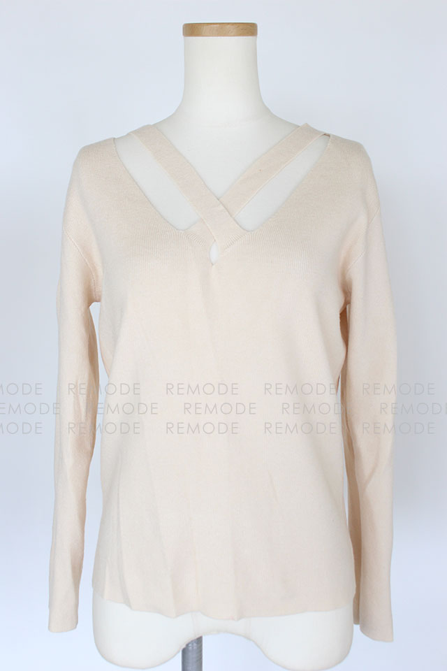 - フロントネックのクロスデザインでエッジを効かせたニットトップス。程よい暑さのニットカットソー生地なので、ロングシーズンご着用いただけます。クロスデザインがセクシーで大人の女性の雰囲気を演出し、合わせるだけでコーディネートのワンポイントとなる1枚です。