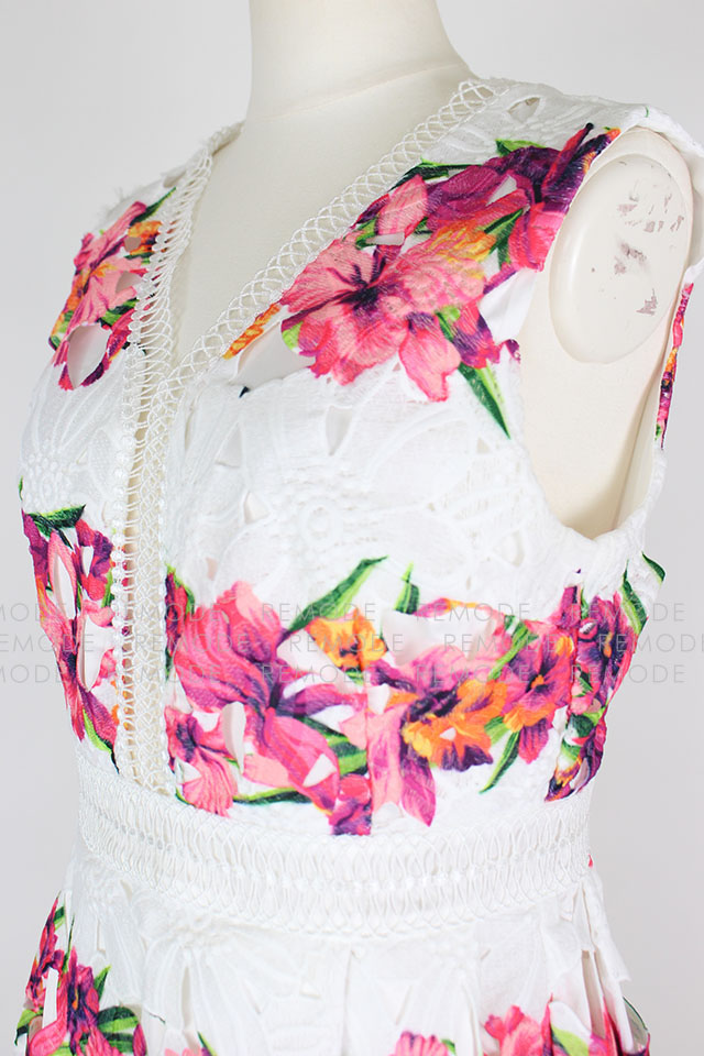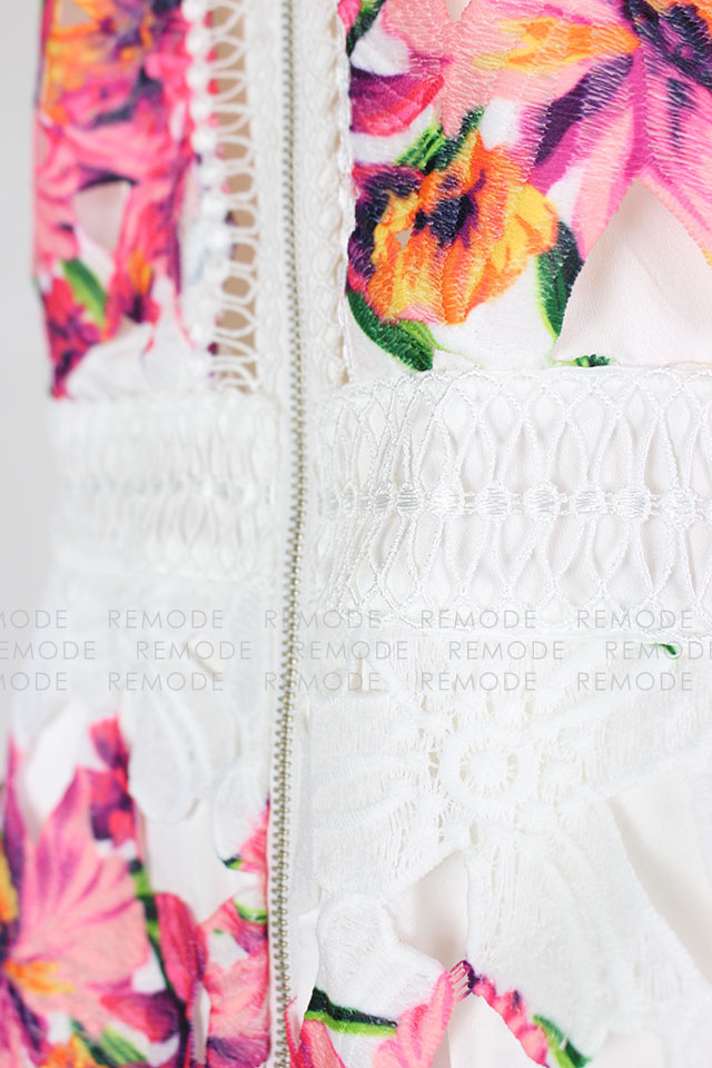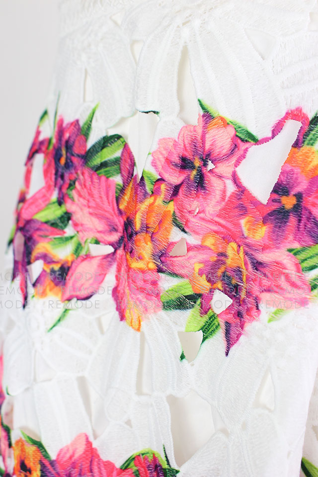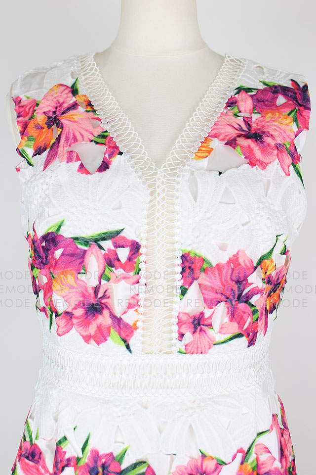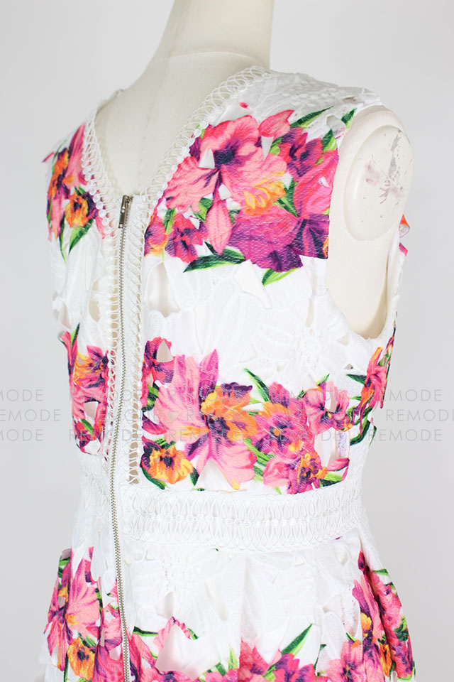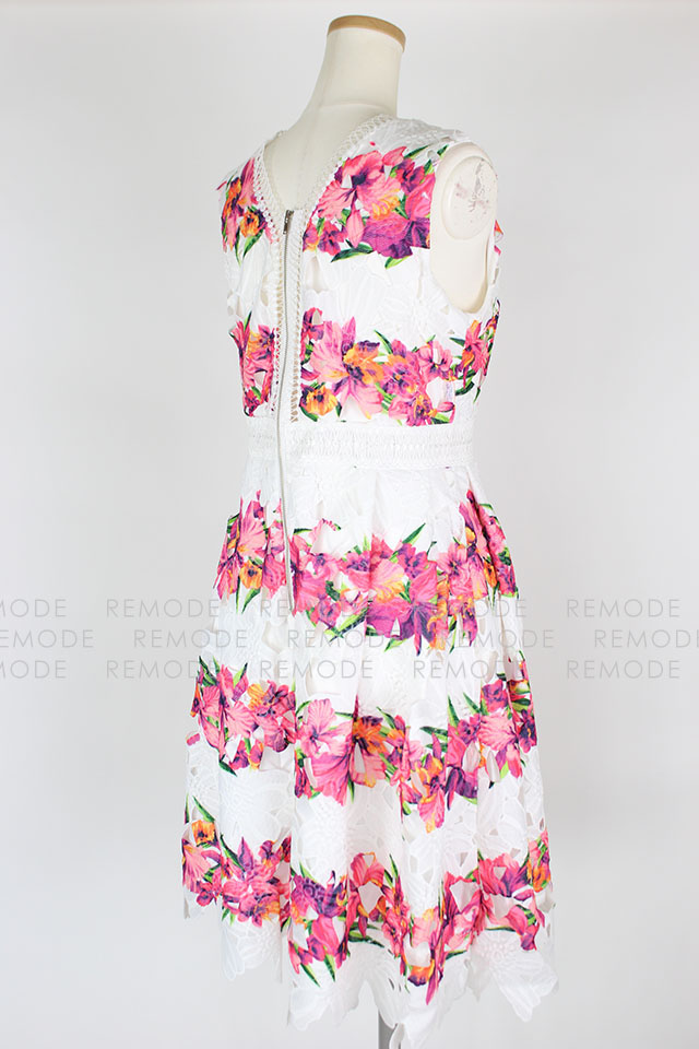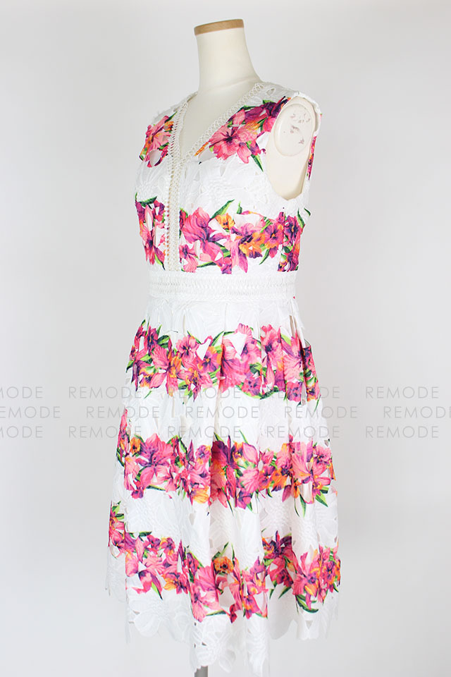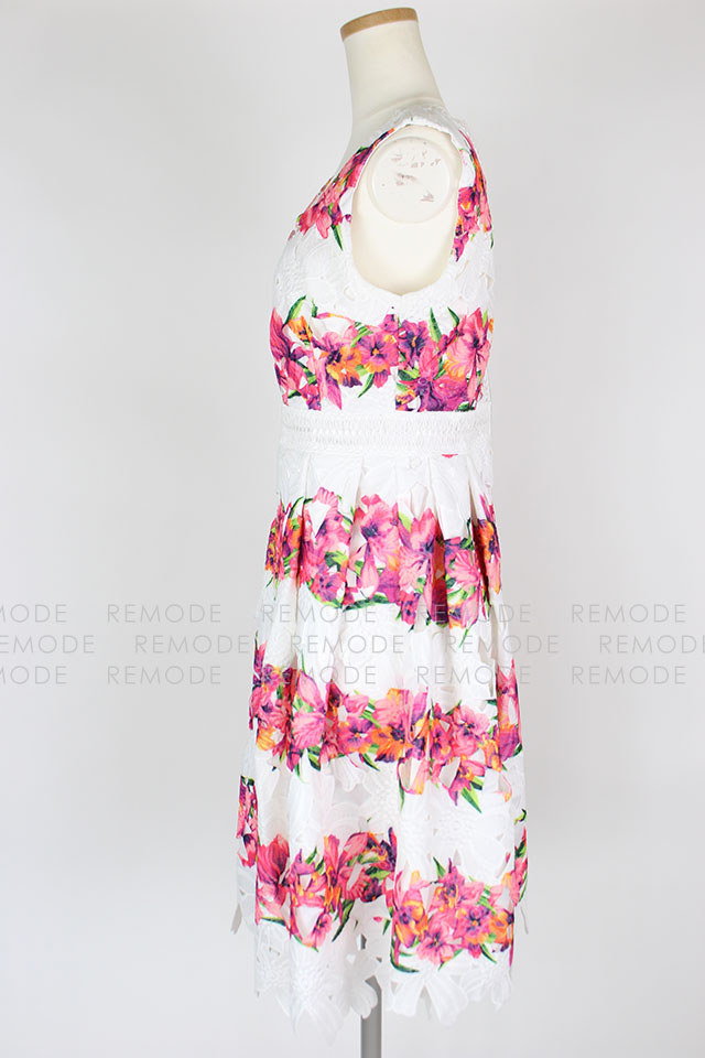 - 色鮮やかな花柄の華やかなワンピースの登場です。柔らかなコットンレースと大胆な花柄プリントがとっても印象的な1枚です。ワンピースを主役に、パンプスやバックなどの小物と大人っぽく小ぶりのアクセサリーなどを合わせた、大人コーディネートがおすすめです。