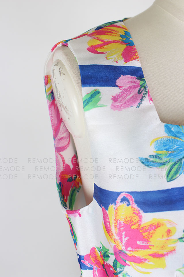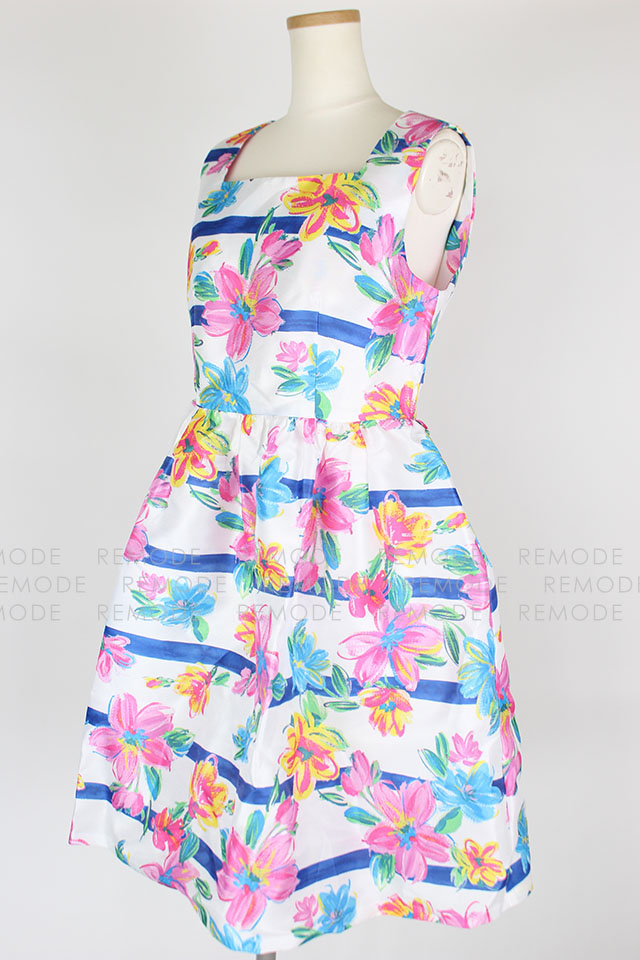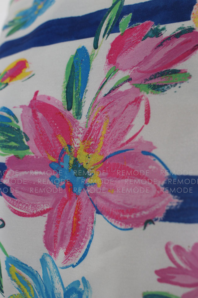 Cherry Ann|フラワー×ボーダープリントワンピース|小川ももえ