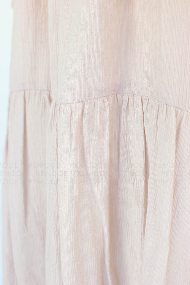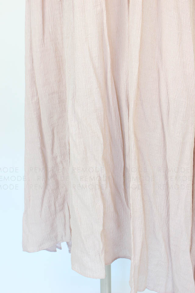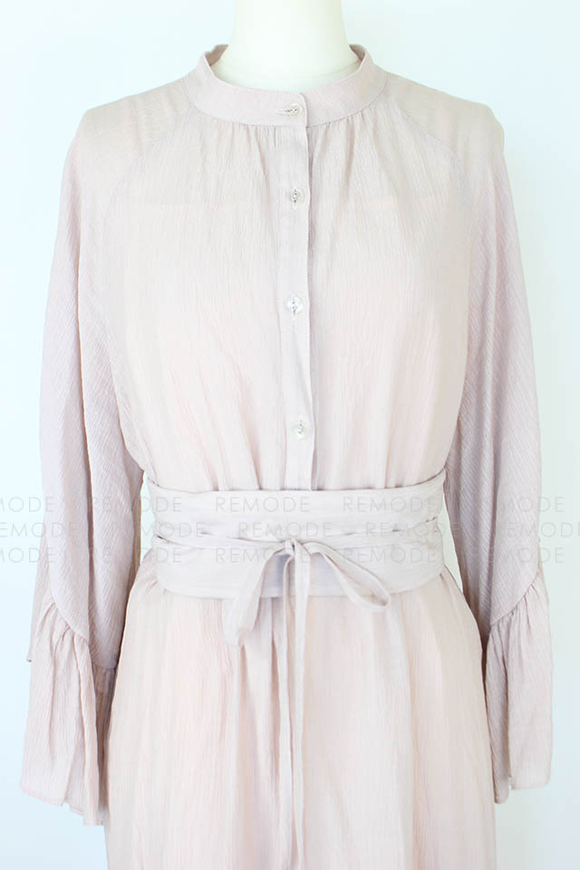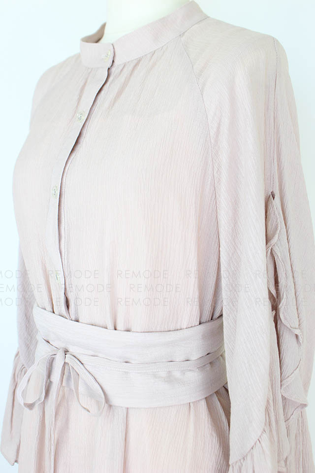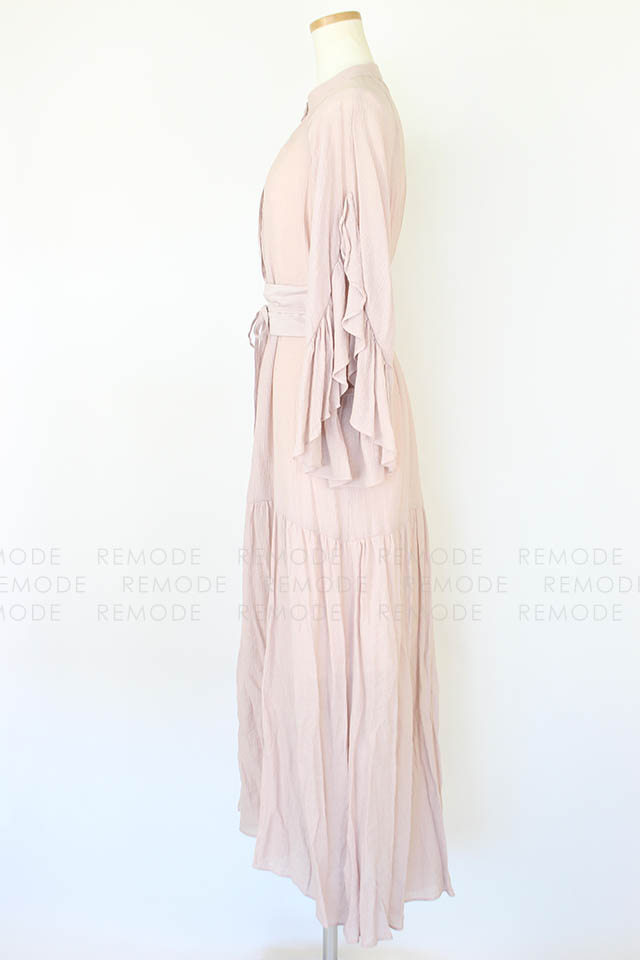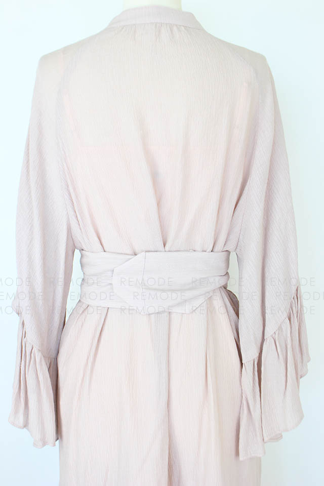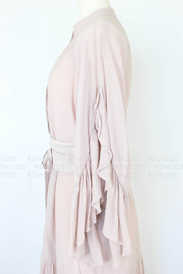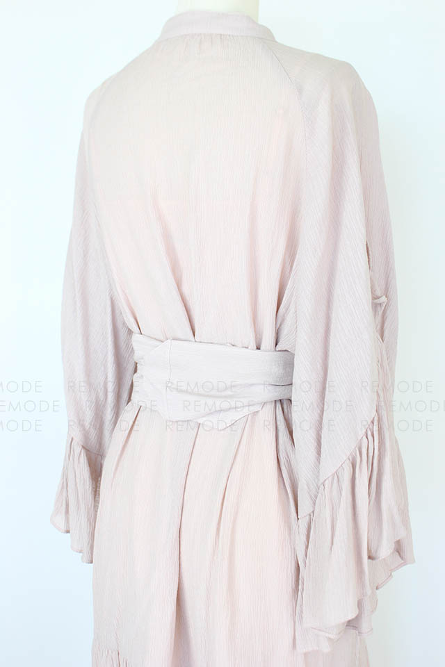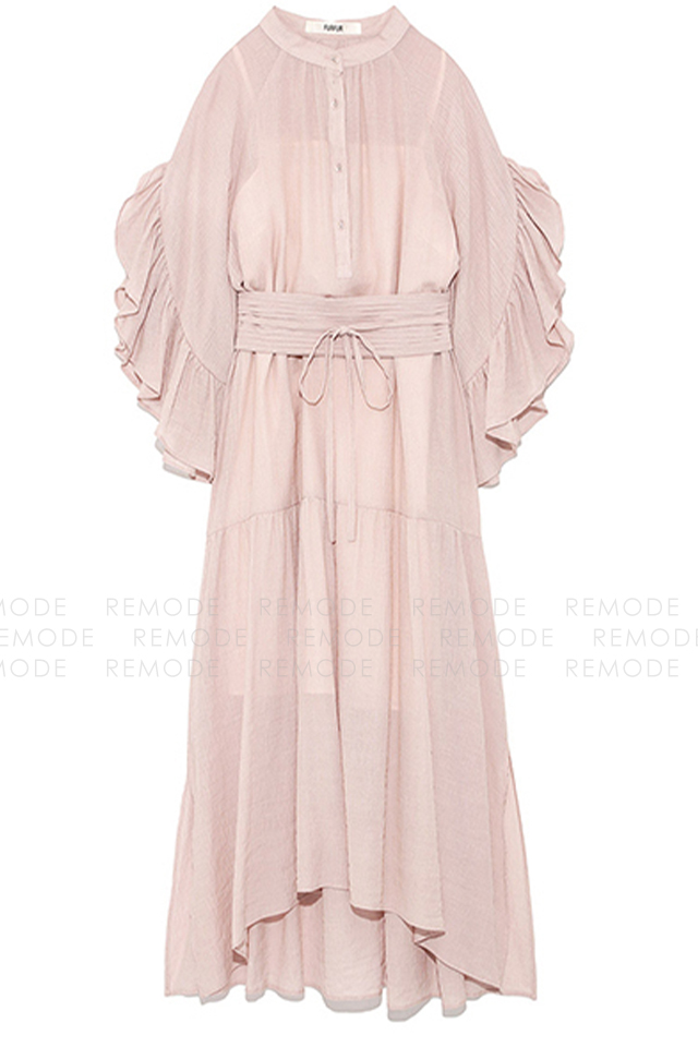 - サラッとした肌触りが涼しげな、楊柳素材で仕立てたワンピース。花びらをイメージした袖のフリルデザインがポイント。同じ生地の別ベルトが付いており、シルエットを着こなしに合わせて変えることができます。