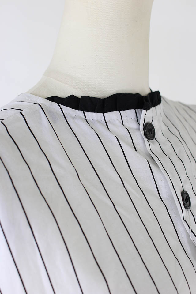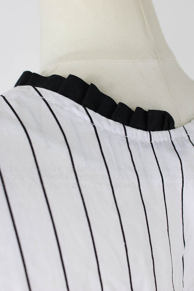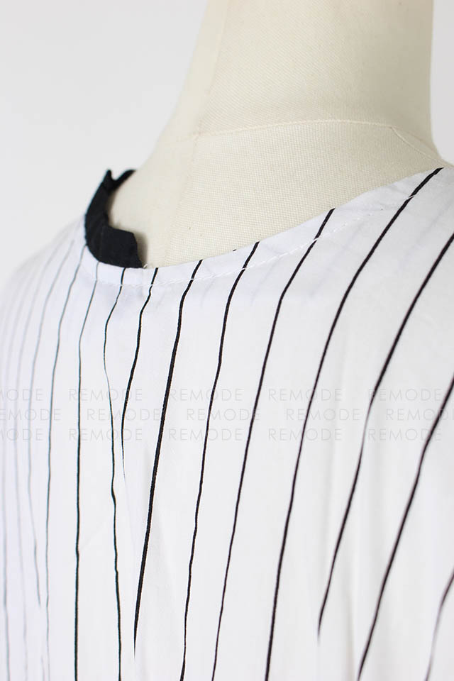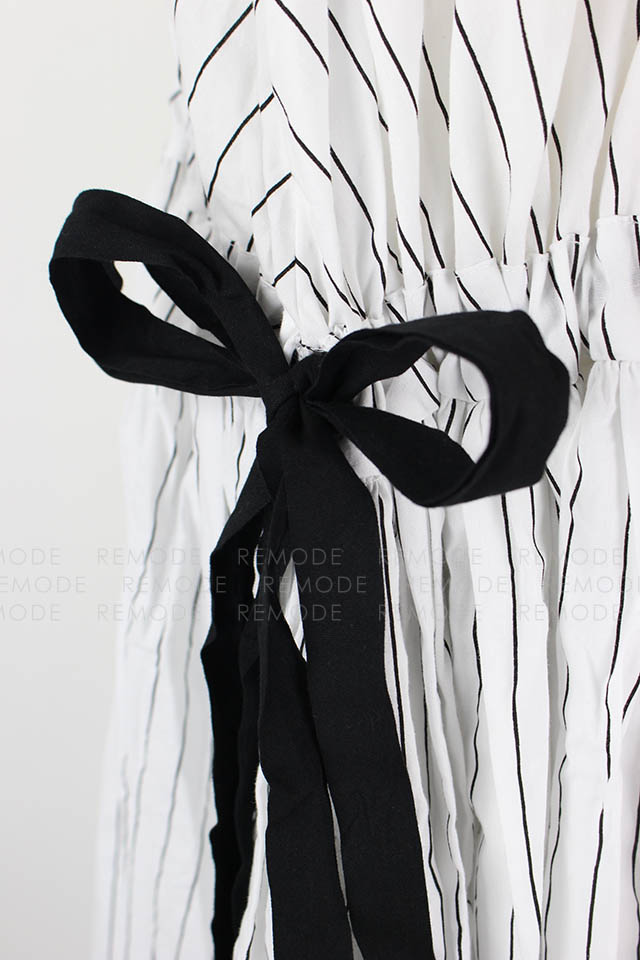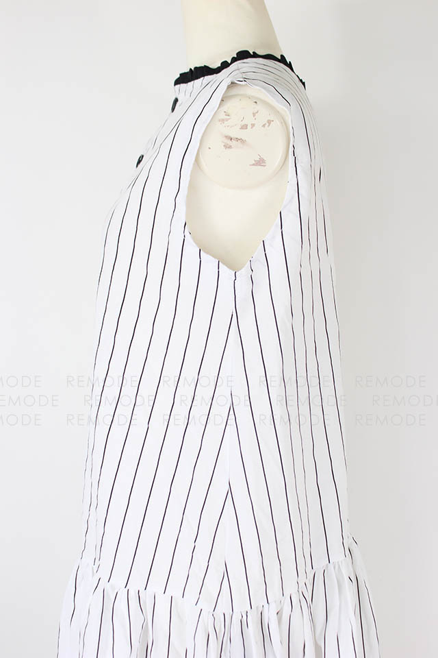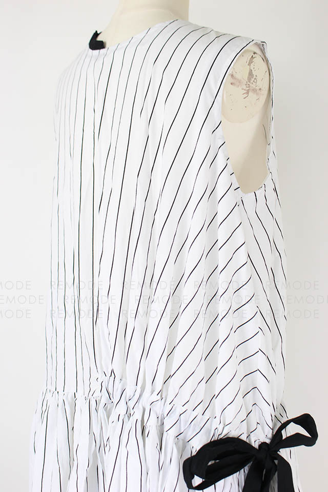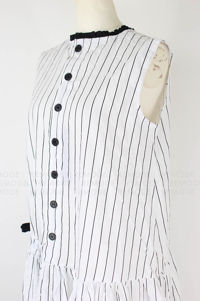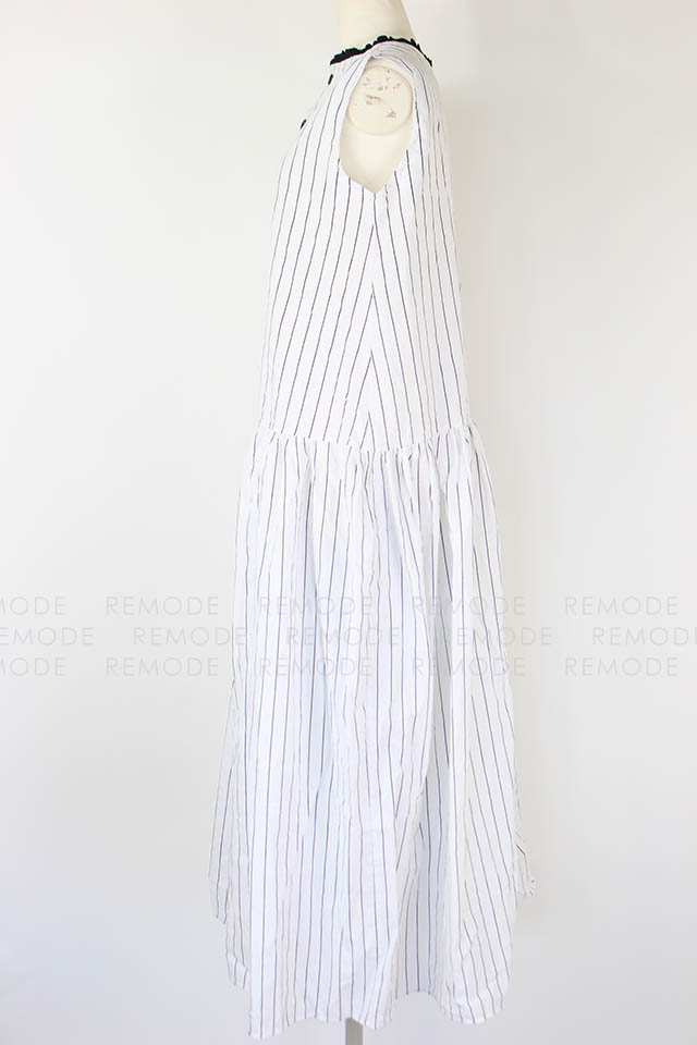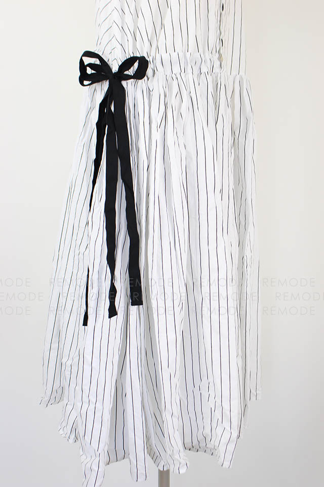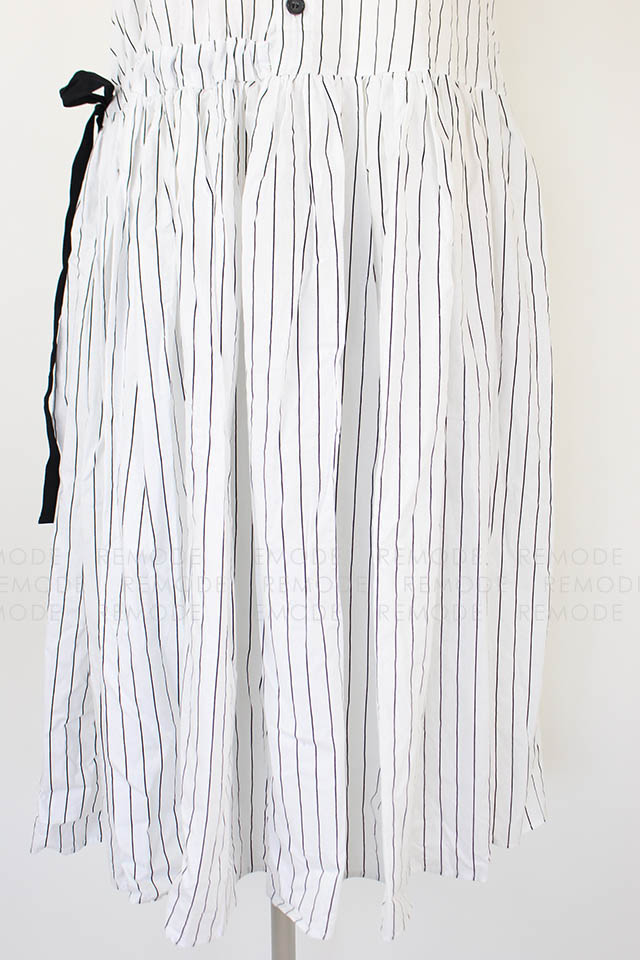 - アシンメトリーなデザインが目をひく、ストライプワンピースの出品です。ボタン側をフロントにもバックにもご使用いただけるので、違った印象のスタイリングが可能です。インナーにカットソーやニットをレイヤード、もしくはボトムをレイヤードした、トレンドライクな着こなしもおすすめです。