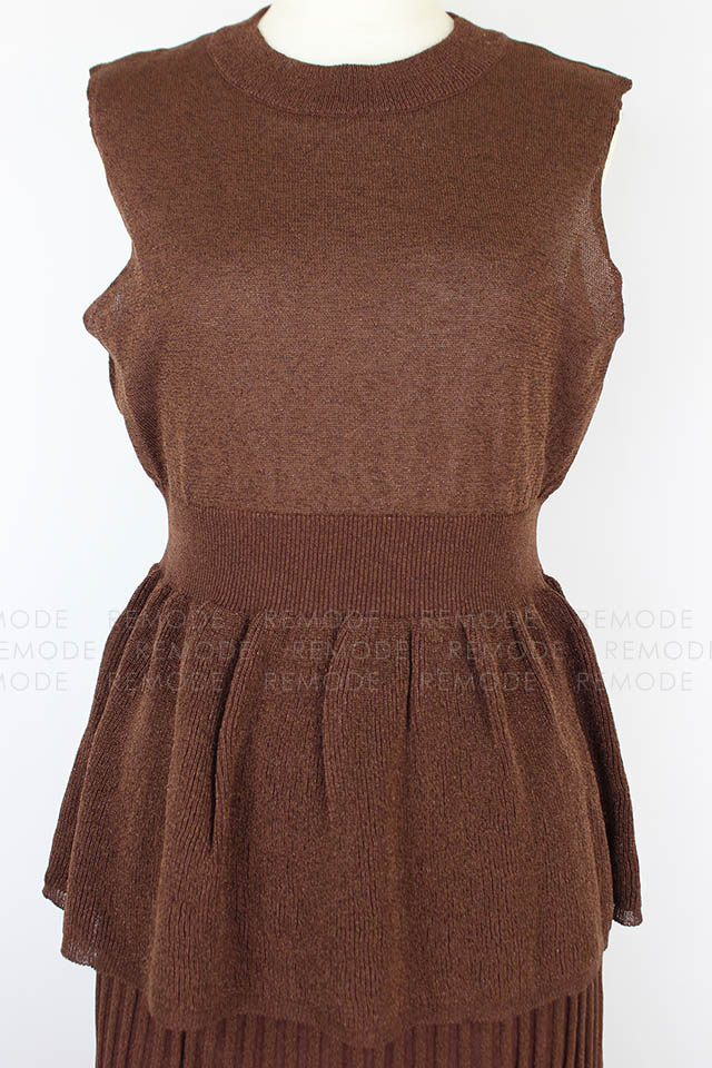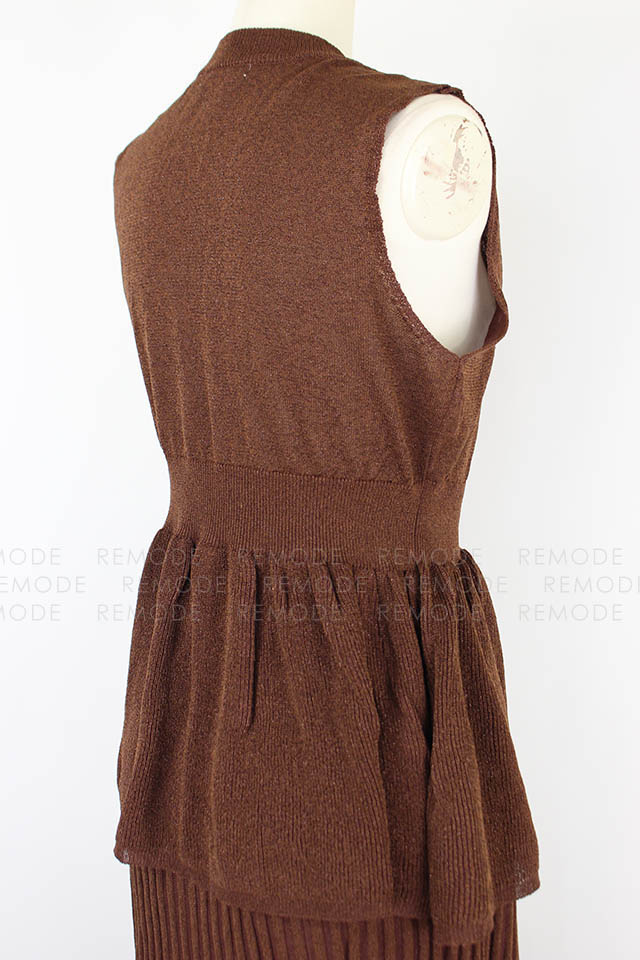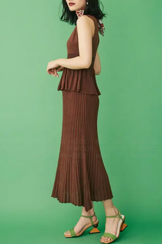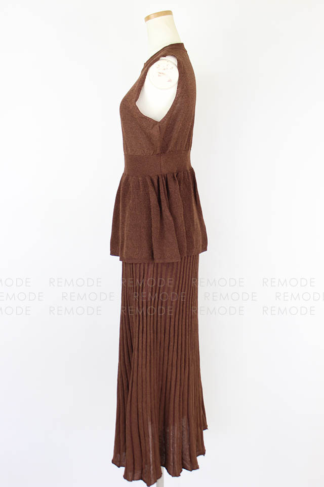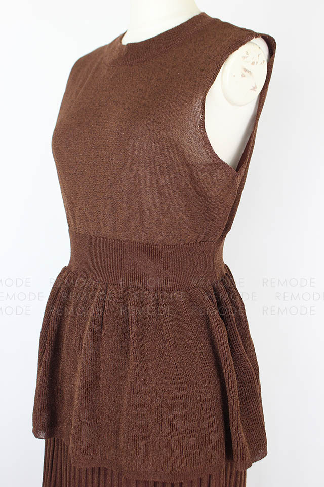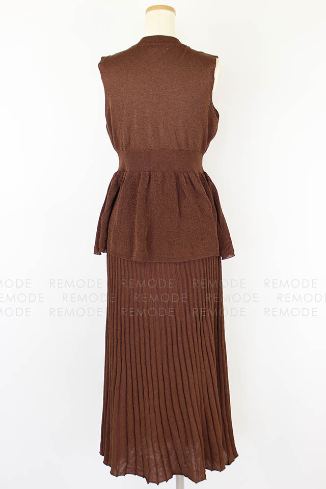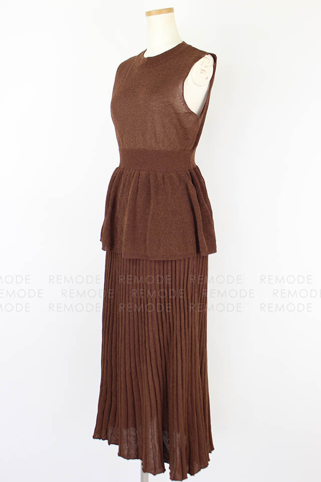 - ラメの発色とシアー感が上品なコンビニットワンピース。強撚糸を使用した涼しげな風合いがこの時期にぴったりな一枚です。フィット&フレアシルエットのトップスとプリーツ風のスカートはニットならではの落ち感でボリュームを抑えた大人な着こなしに◎セットで着るのはもちろん、別々に着ることもできる為スタイリングの幅が広がります。