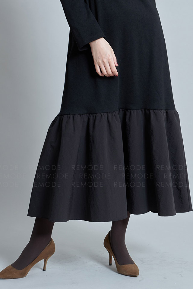 - 大人がチョイスしやすいカラーと裾フリルで上品な印象に。リブタフタ切替が旬なコーデに格上げしてくれます。上品でコンサバティブでありながら流行を取り入れた魅力的なワンピースです。