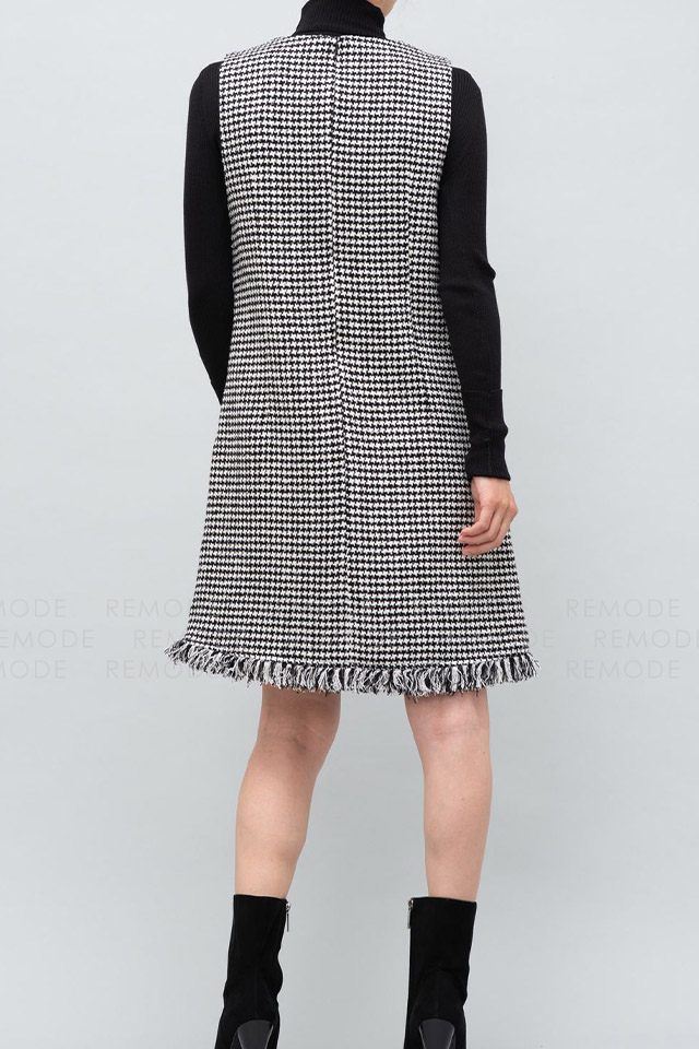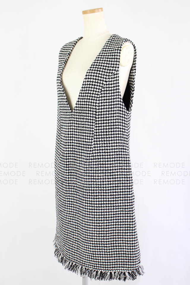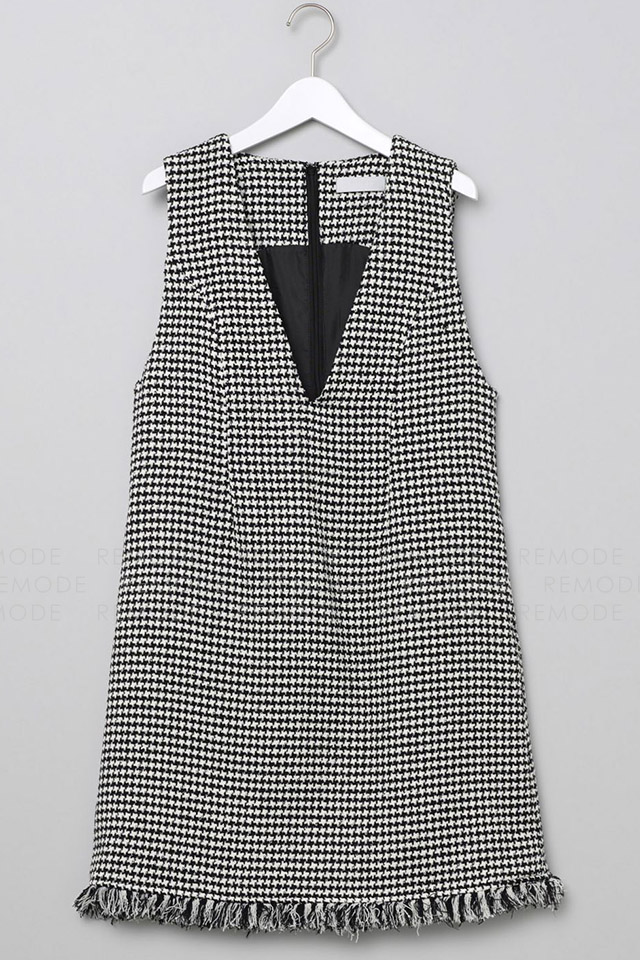 - CELFORDで人気のジャンパードレス。ツイード素材で登場です。前を深いV開きにすることで大人の方も着やすく、ハイネックのタイトなニットやフリルのついたブラウスなど様々な着回しが効くアイテムです。あえてウエストをベルトにすることでスタイルアップ効果もあり、裾はフリンジを付けて遊び心を持たせています。定番のモノクロ千鳥柄で、末長くご使用いただけるアイテムです。