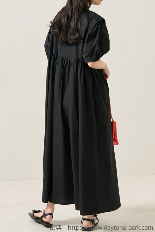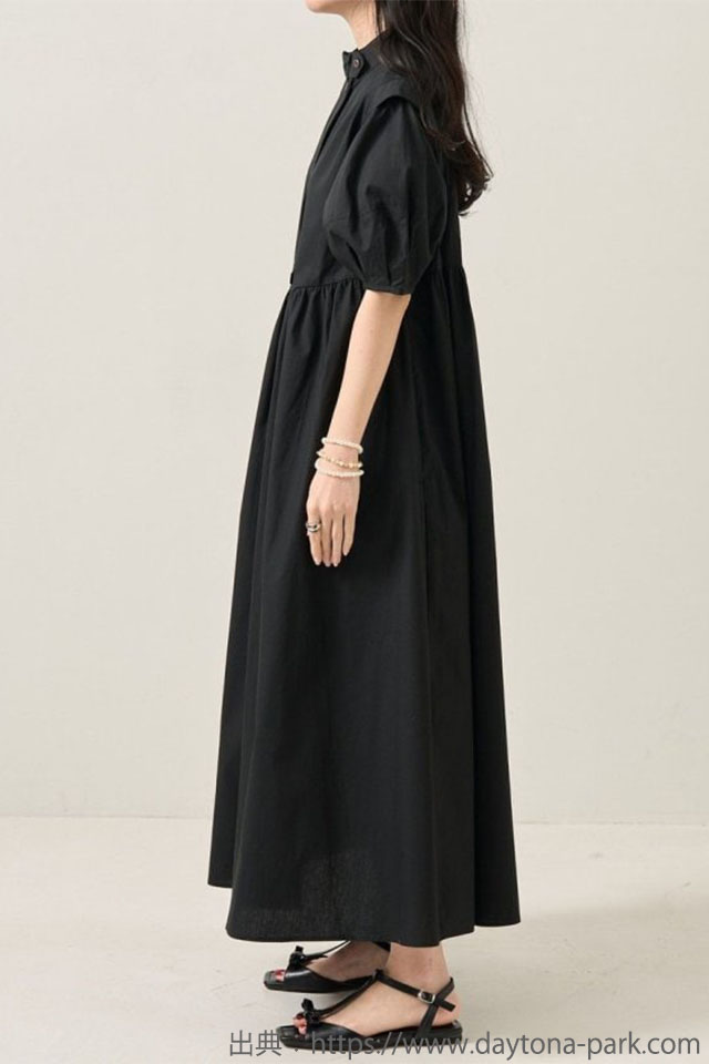 - あらゆるシーンで着られる!定番のバルーンスリーブワンピースから半袖が登場!ヴィンテージライクな形が魅力のマキシ丈シャツワンピース。張りがある素材なので綺麗なシルエットが特徴。今年もトレンドのボリュームスリーブデザイン。前開けで軽い羽織り、アウターとしても使えます。肩に切り替えのあるデザインなので、華奢見えしやすいシルエット。きちんと感のあるスタンドカラー。落ち着いたマキシ丈なので、大人っぽい印象に。