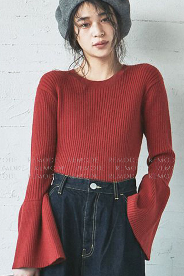 MURUA|フレアスリーブリブニット|朝比パメラ