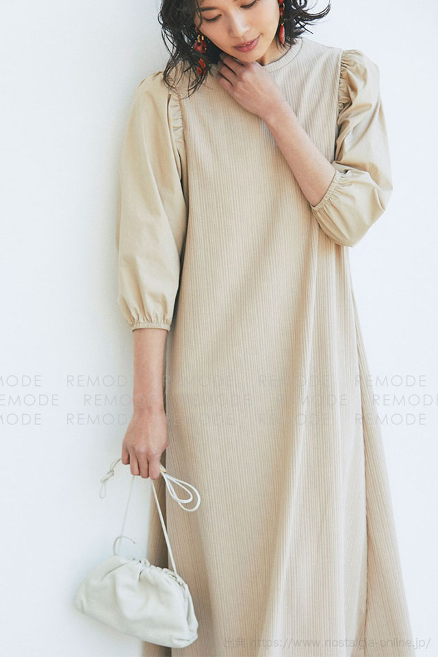 &.NOSTALGIA|パフスリーブリブワンピース|あやぷー